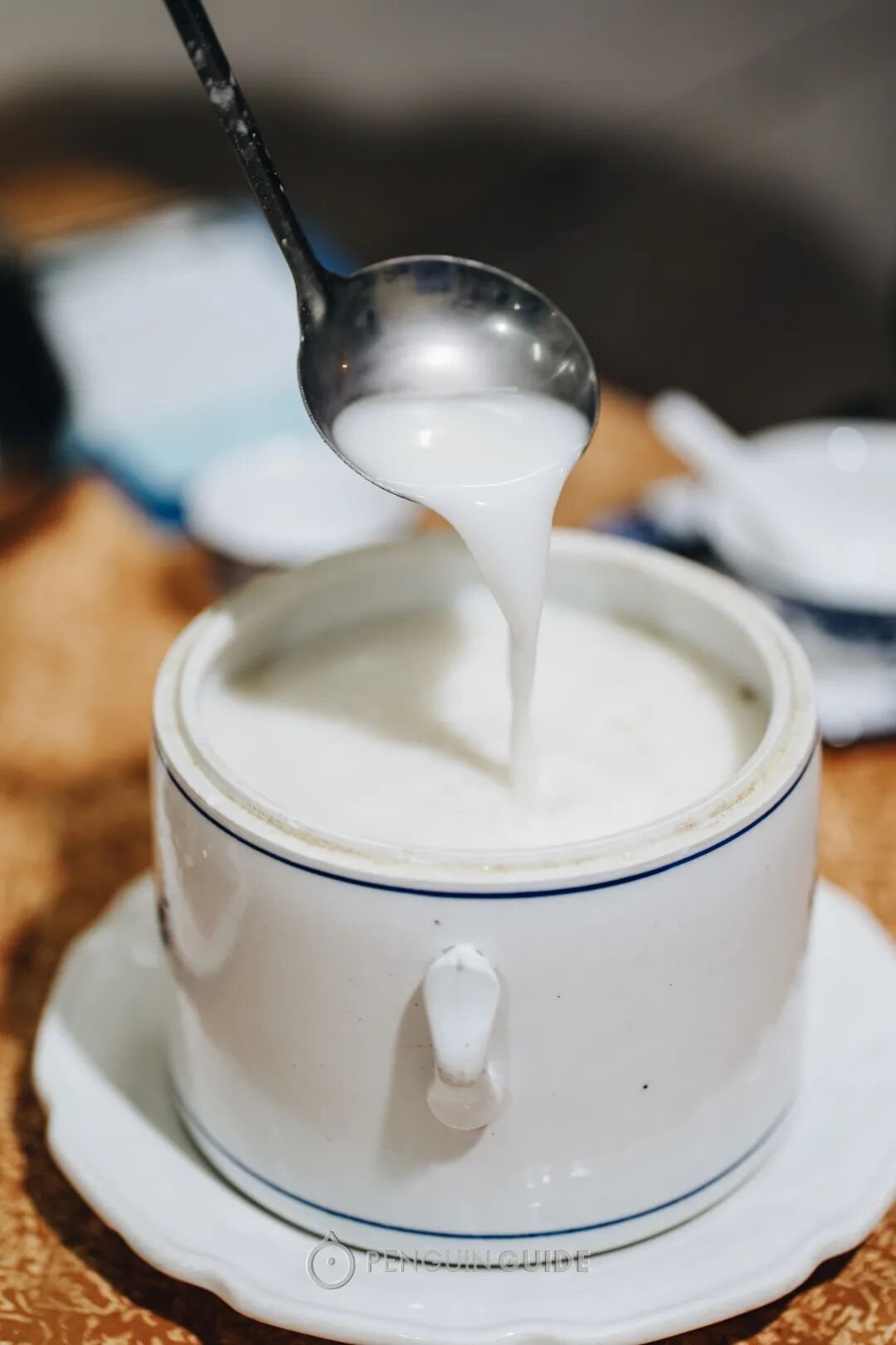 除了冰镇黄鳝,我会顺便点一盅杏汁白肺汤,杏汁磨得细腻,汤色如牛乳般洁白,温润落胃。