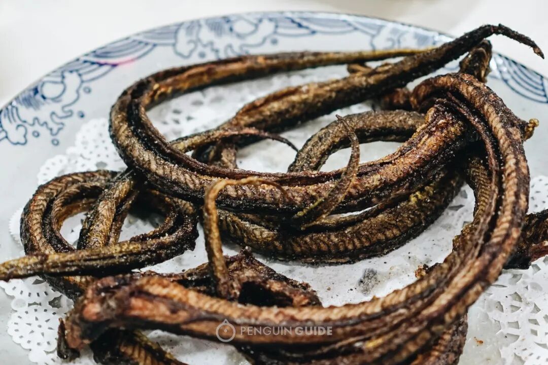 炸傻鳝的精髓,在于慢条斯理撕着吃,过程很有仪式感:不能心急直接啃,要从上往下撕,有点像手撕牛肉干,这样才能避开内脏的苦肠,很适合聊天喝酒慢慢吃。