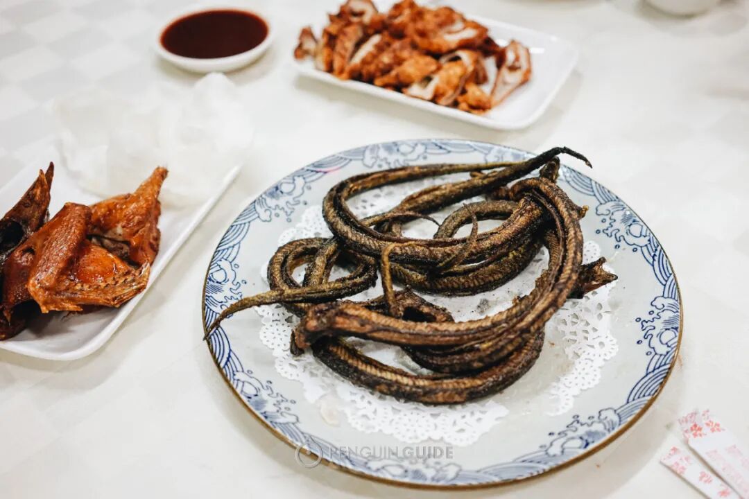 这些手指般粗的黄鳝肉不多,骨头尚未变硬,吃的就是一口香脆,不求饱,无非过过嘴瘾。