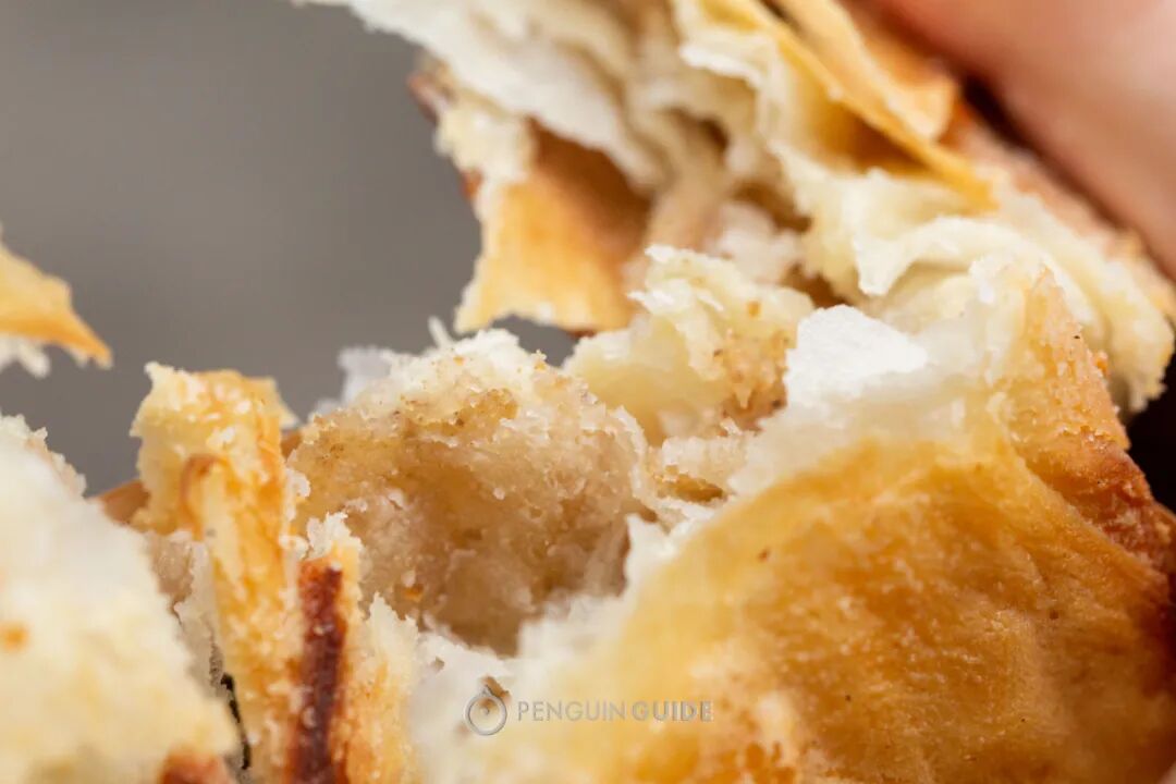 考究一点的如皋人会要求吃现铲的,也就是刚烤出来的烧饼,皮金黄轻脆,酥芯层叠,柔韧喷香。