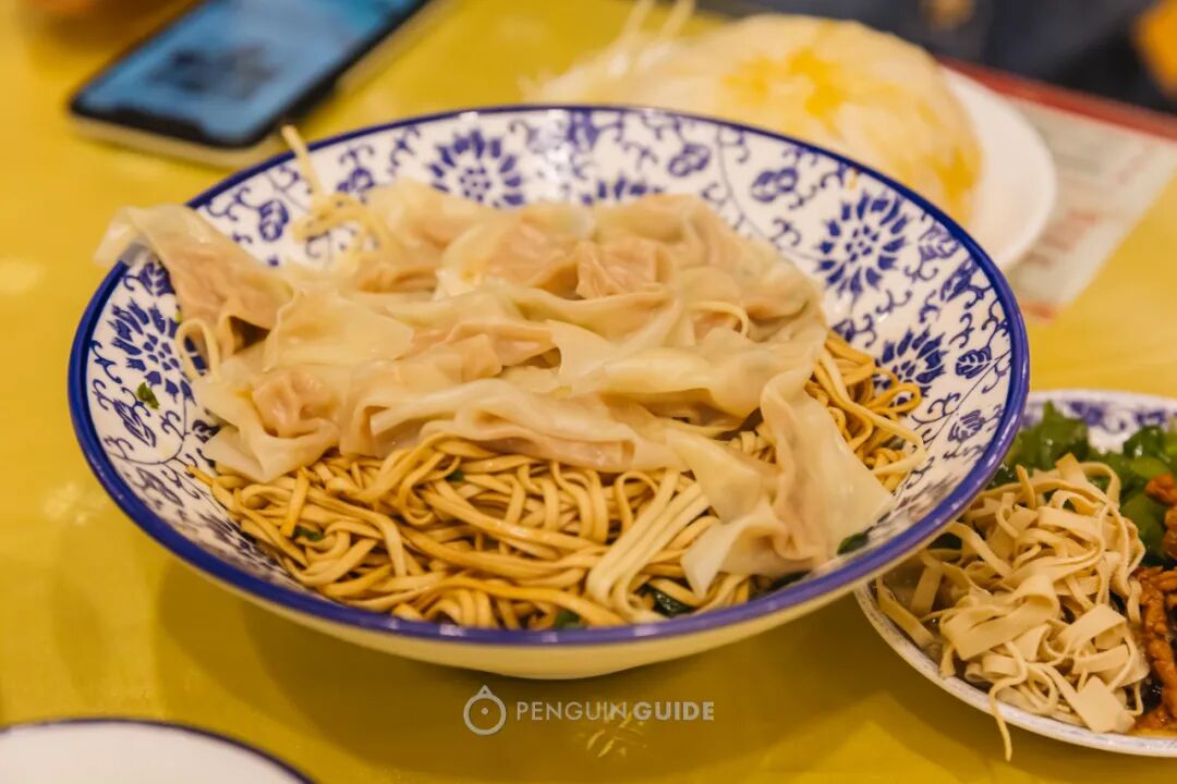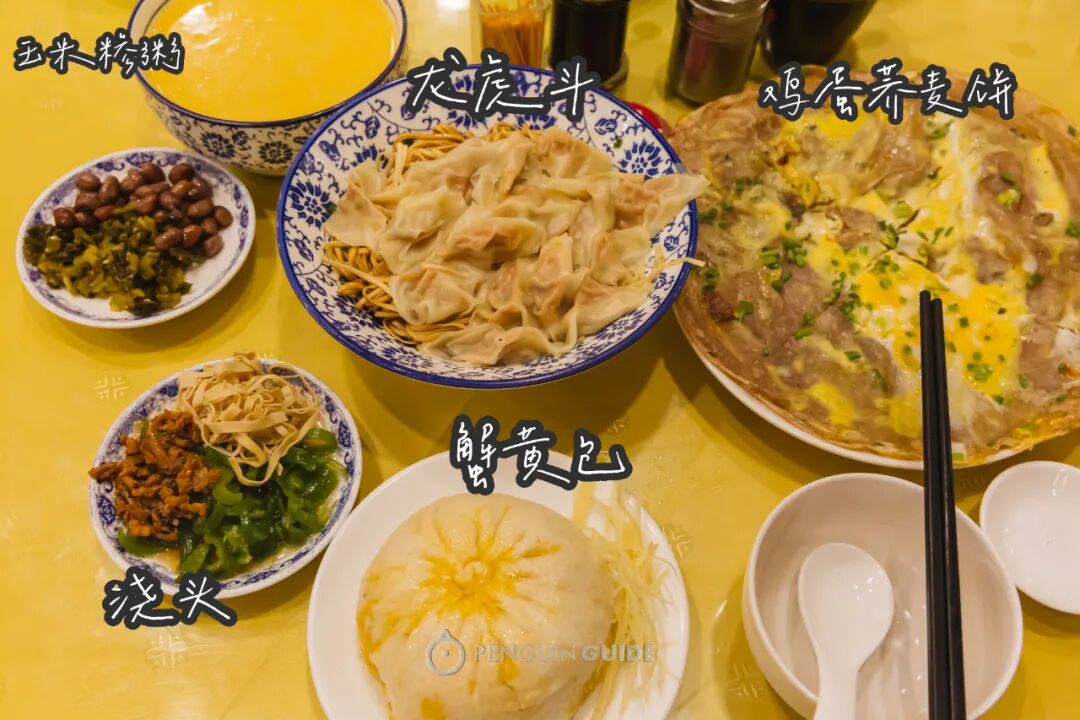 当地还有一种更有趣的面食,叫龙虎斗,是盘水面+肉饺的双重主食组合。面条有嚼劲,肉饺鲜香,一个早上双重满足!