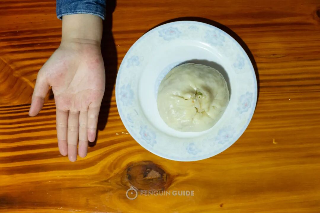 风格要淳朴、猛烈很多,端上来就是这么实打实一只碗口大的包子。