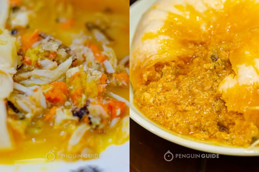 比如我们点的这只极品蟹包,蟹黄蟹肉更大块、更鲜甜,有空口吃了双倍蟹粉浇头的爽感。