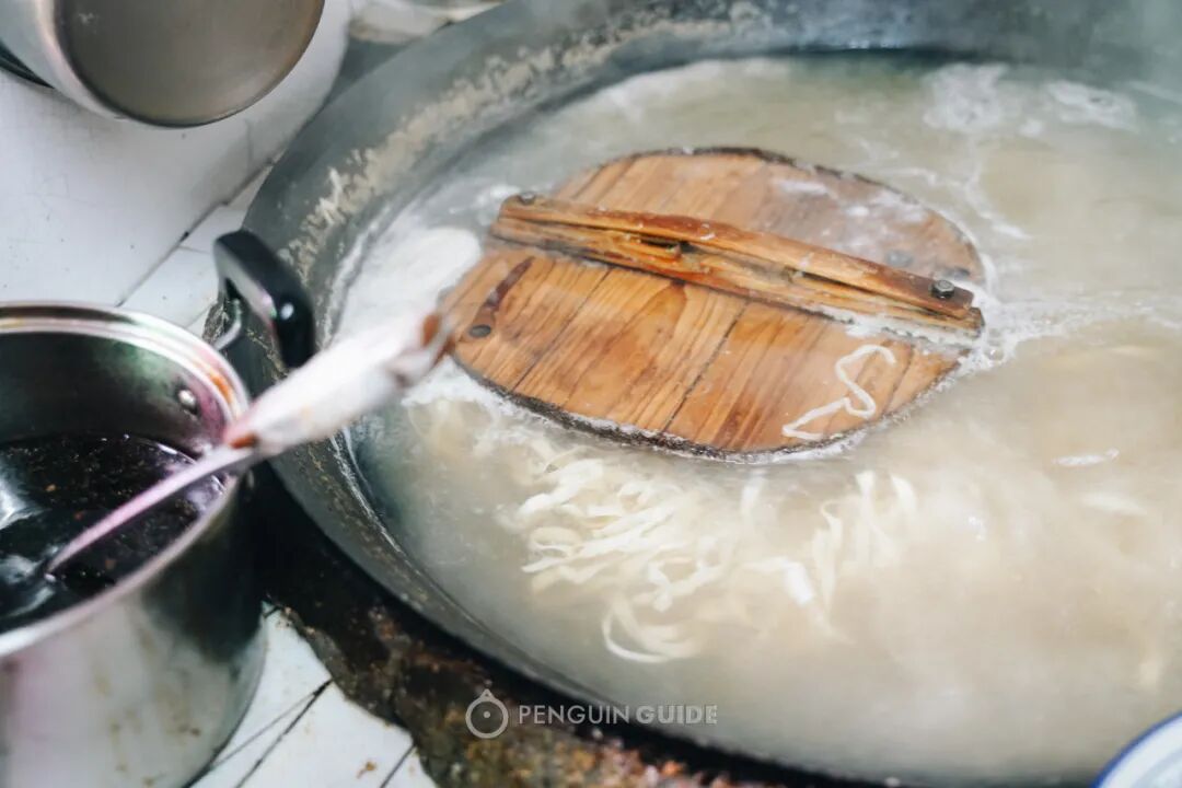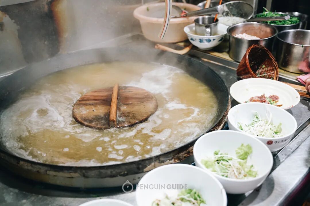 这个大铁锅里,荡漾着满当当的面汤,会从早一直沸腾到收摊。