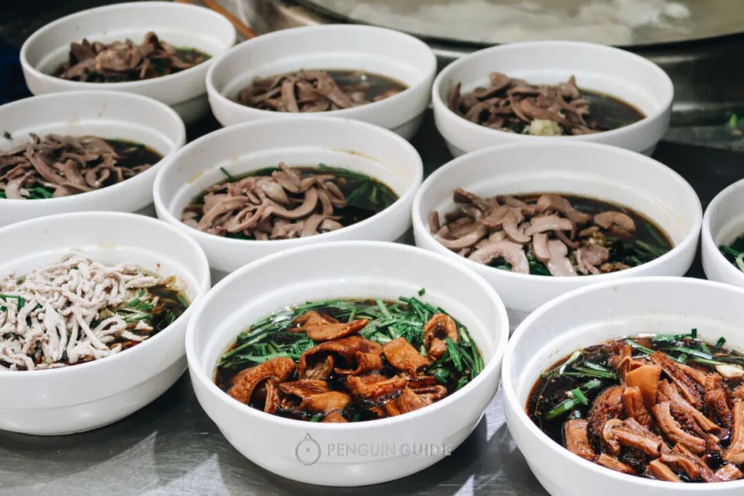 选择也很多:有早就卤好的牛肉、香肠,有烧得通红香艳的肥肠、牛肚,还有新鲜水灵的长鱼、腰花。