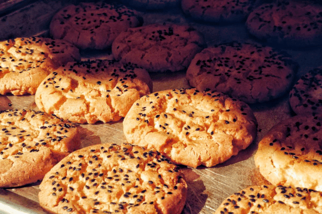 晨光洒向桃酥,真是美啊。@大唐糕点