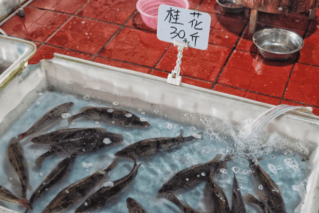 海鲜池里的游水渔鲜不少,但熟客们坐下来就盲点的,要数这道油浸笋壳鱼。