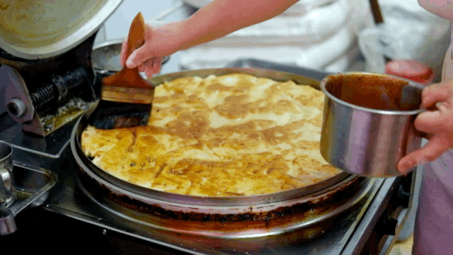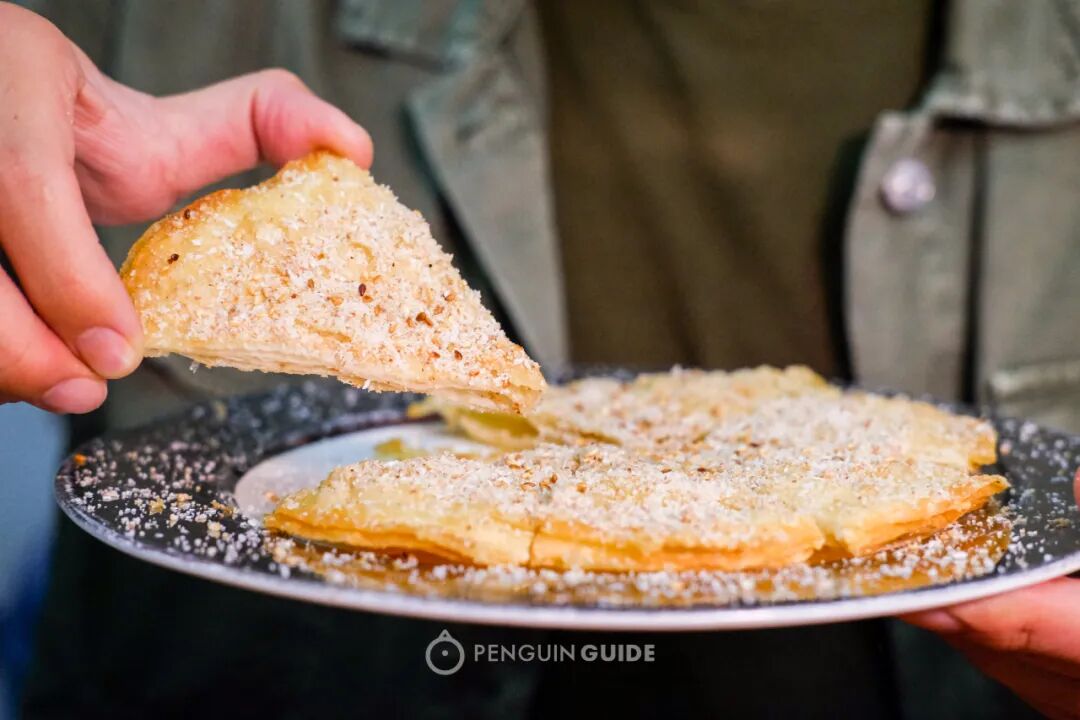 这道薄煎饼也是必点的,洒了细细碎碎的芝麻糖,收边炸得脆酥酥的,像在吃饼干。