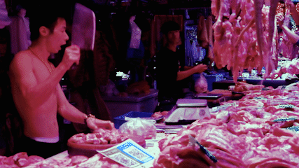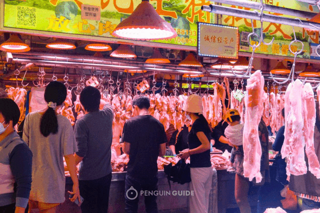 这里肉菜区因为灯光的原因,就会拉上一层王家卫电影般的滤镜。