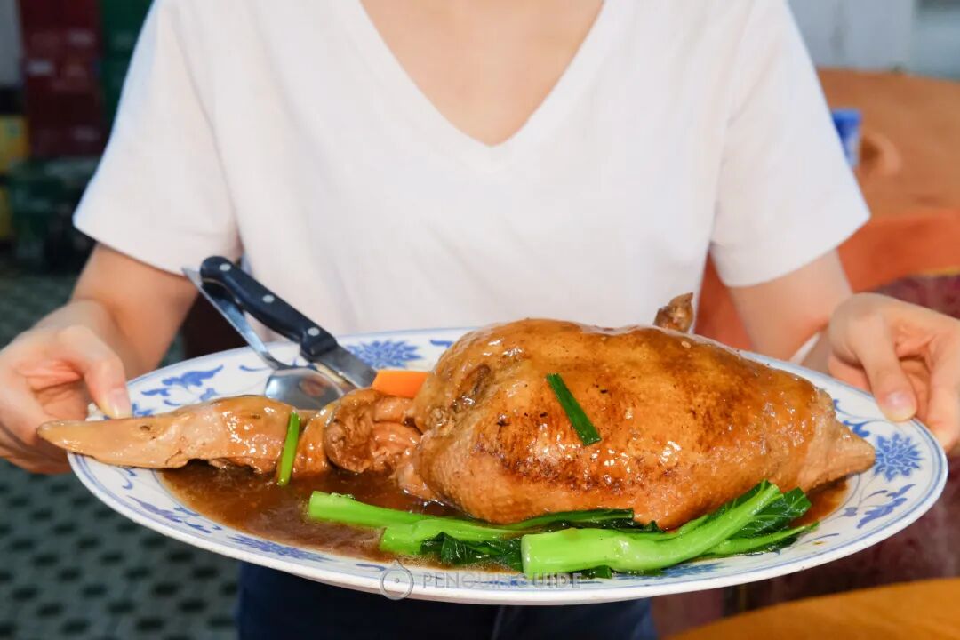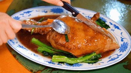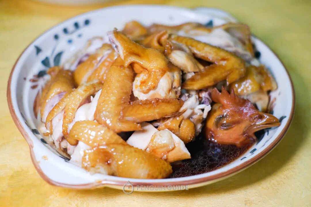 下单时店家会提醒至少等30-45分钟,因为是即点即宰即浇的,豉油同样细心地与其它食材熬煮过,然后一遍一遍地浇淋鸡身至入味,从鸡皮到鸡肉,都是醇厚的酱香。