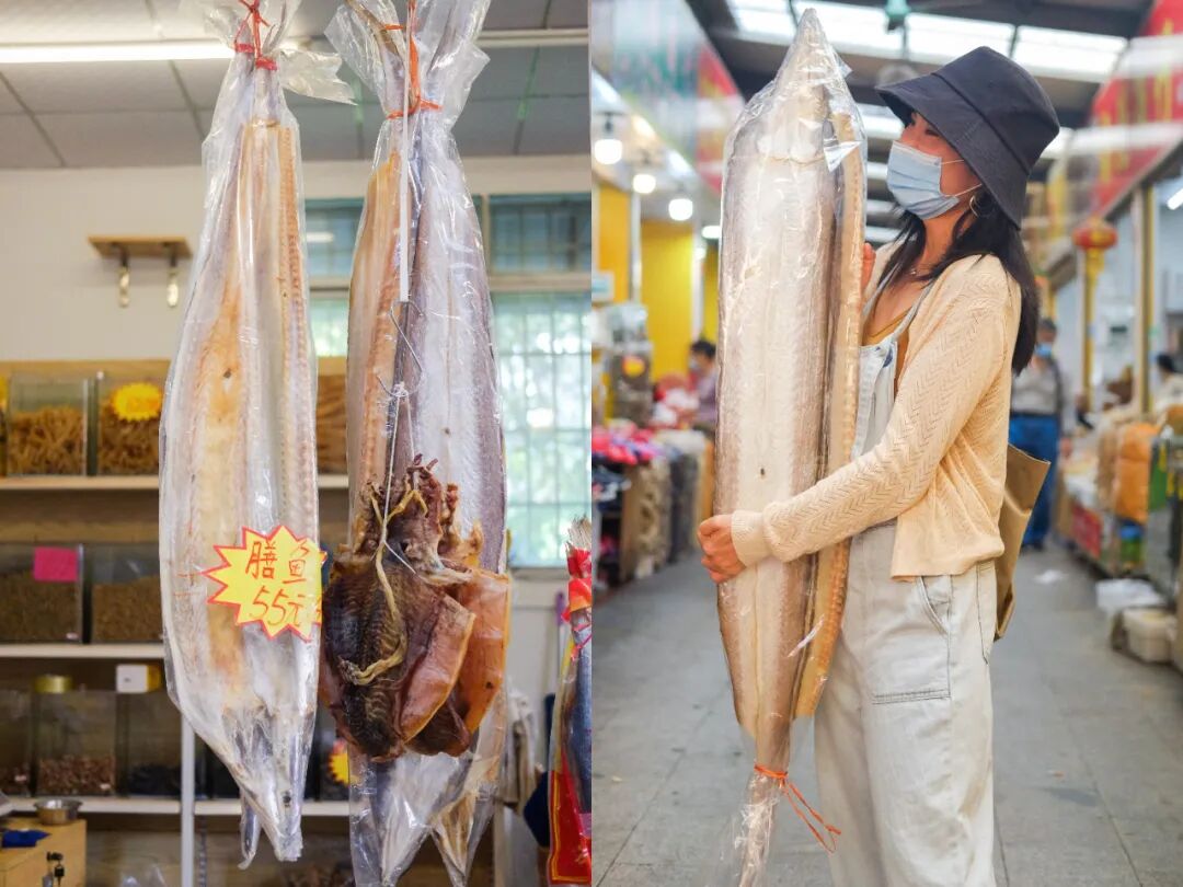 芳村街坊屈太太,抱了一条与人同高的鳝鱼干回家,说只有这个市场才有这么大条的卖。