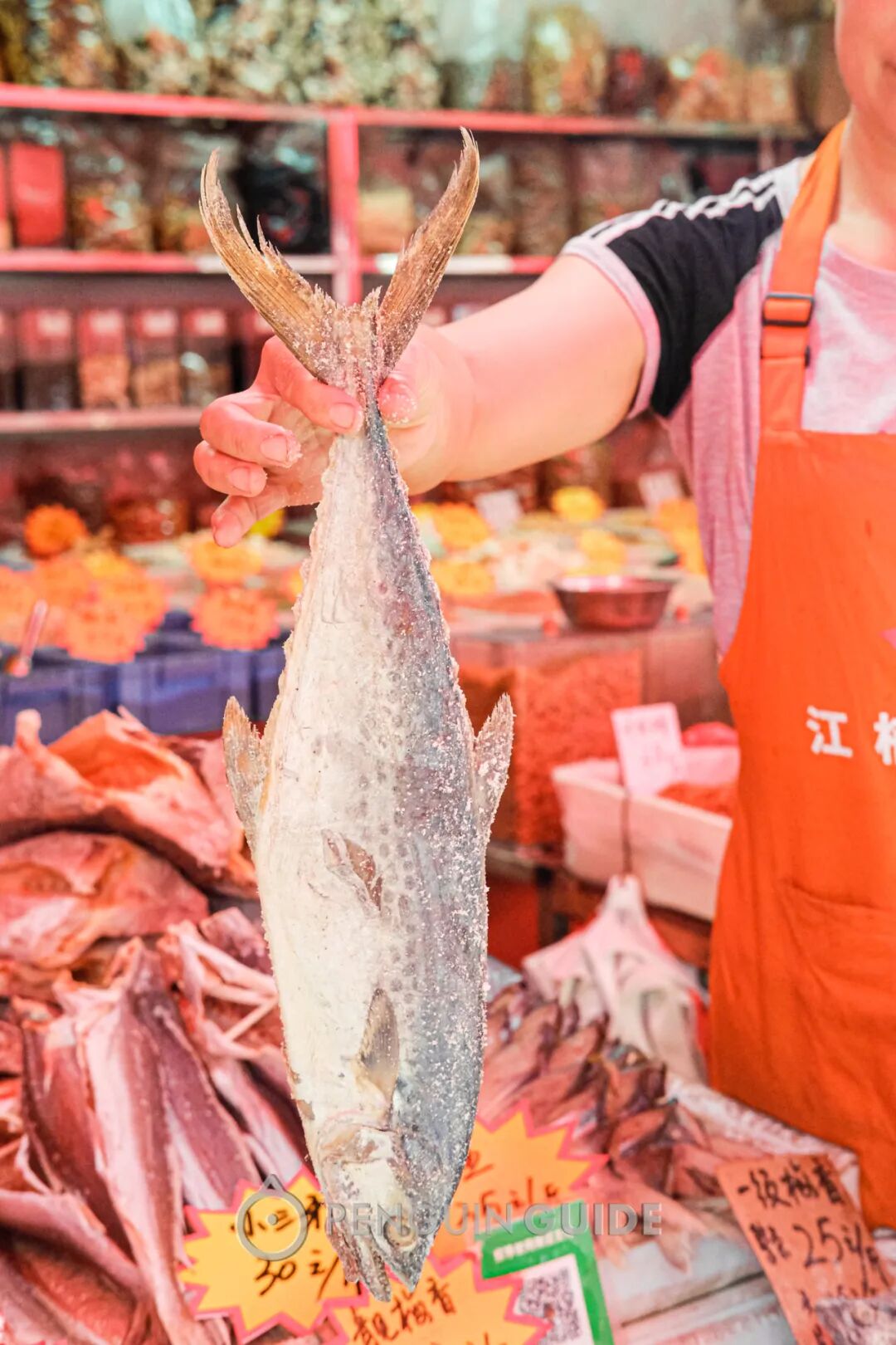 广东人最爱的梅香马交鱼,也就是咸鱼啦,这里有不同的级别可选,像这条一级梅香,就25元一斤可交易。
