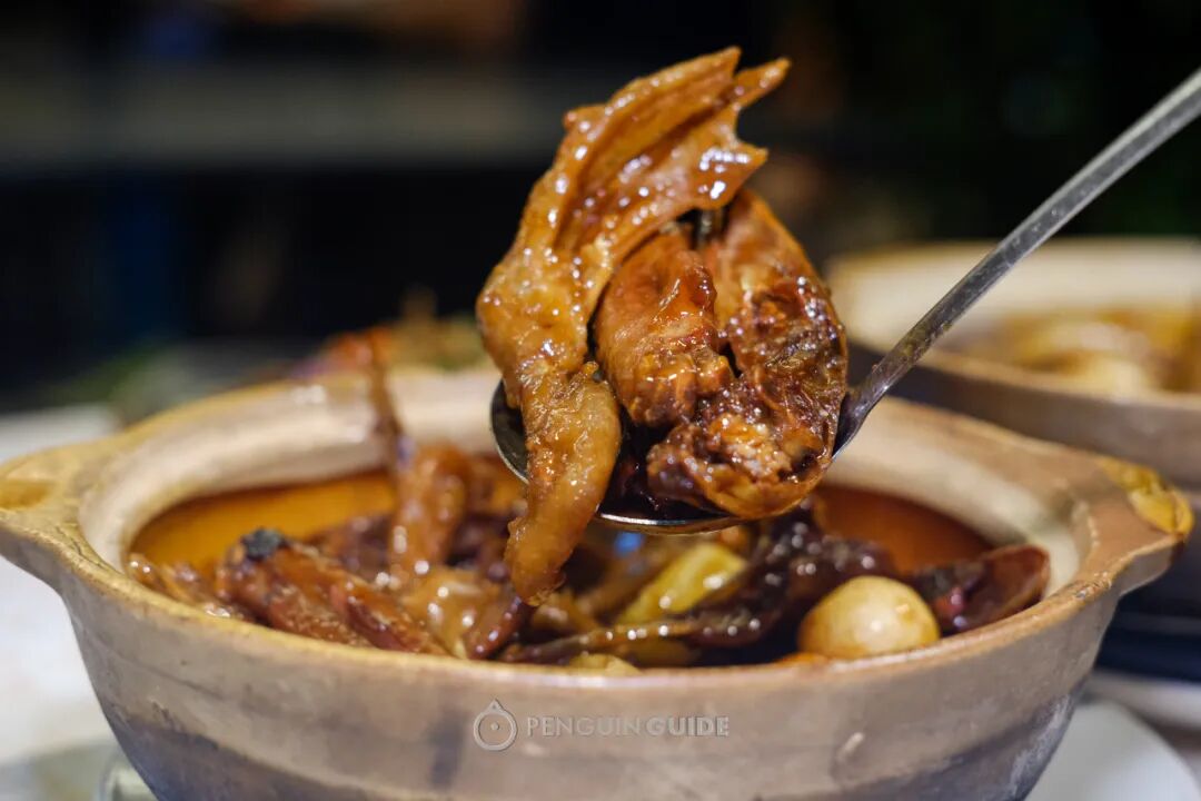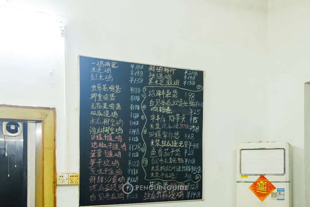 和前面的“前辈”们相比,这间店开业才6年,资历尚浅,能入选的理由,是专注于做好鸡煲这个课题。看看菜单,鸡煲的选择近20种,而且大多是养生做法,例如米走鸡、抽湿鸡等的名字,也只有广东人才看得懂了。