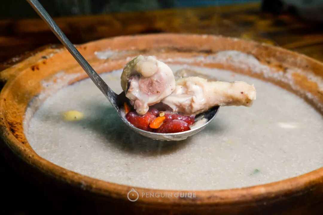 抽湿的意思,就是以一堆祛湿食材如淮山、芡实、云苓、红枣,再加入了纯米桨作为汤底,太适合长年湿气过重的广东人了。