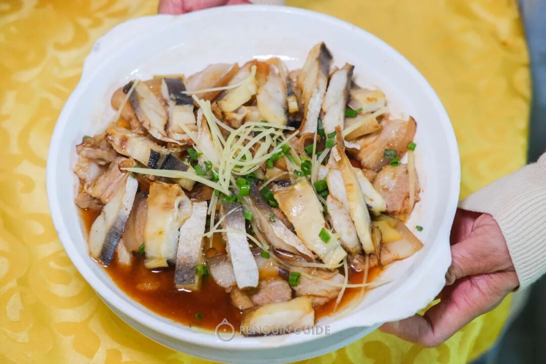 这道是从市场买的鳝鱼干,店家马上反应用花肉来蒸,变成咸香俱备的鳝鱼蒸花肉。