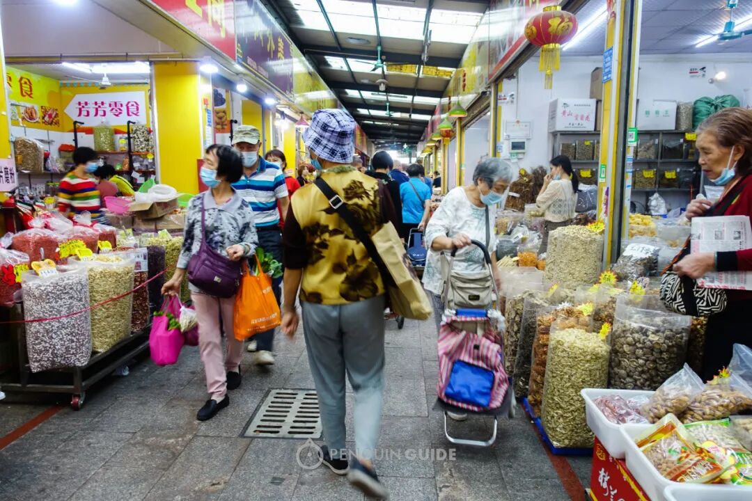 论食材鲜度,它也生猛到源头上,拥有老四区里规模最大、最便宜的菜市场,每天吸引着退休的爷爷奶奶跨城来买菜……