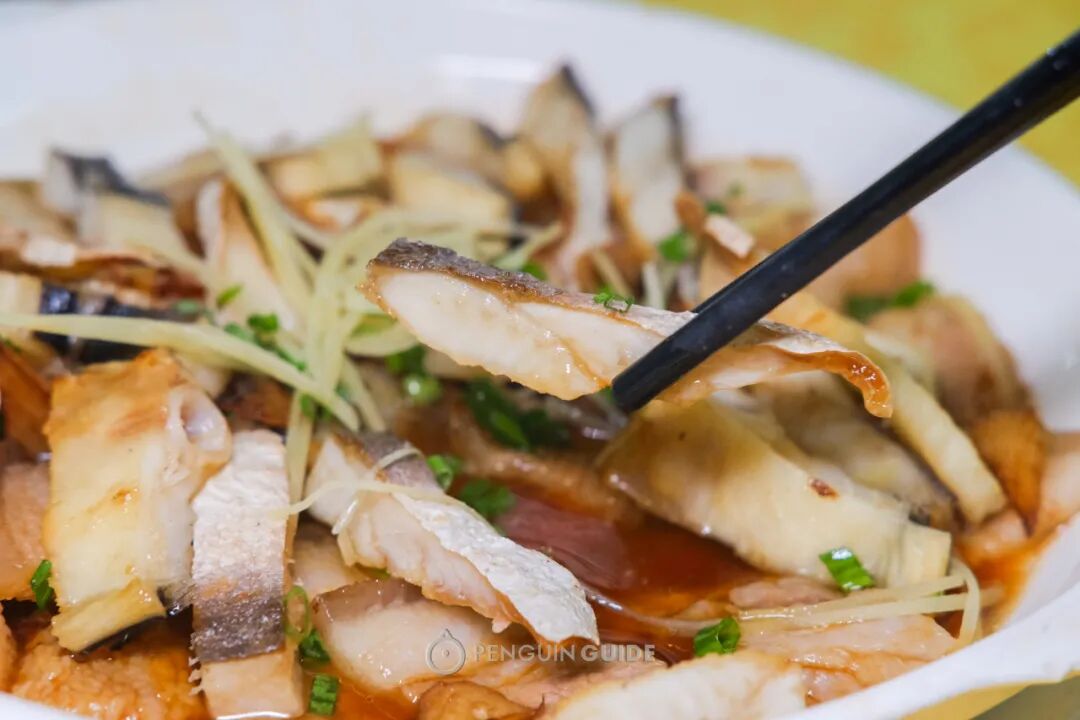 不是普通的笋壳,也不是普通的油浸。笋壳只取一斤半左右大小,肉质最鲜美嫩滑;豉油事先用香料煮制过,带着醇厚的回甘,两者一组合,嗐,鲜到要安排纹眉。