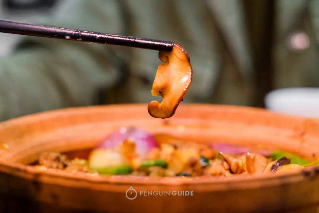 也推荐一道沙姜沙锅啫鸡,嗞嗞油温逼出鸡肉鲜美,也是镬气的另一种表达。