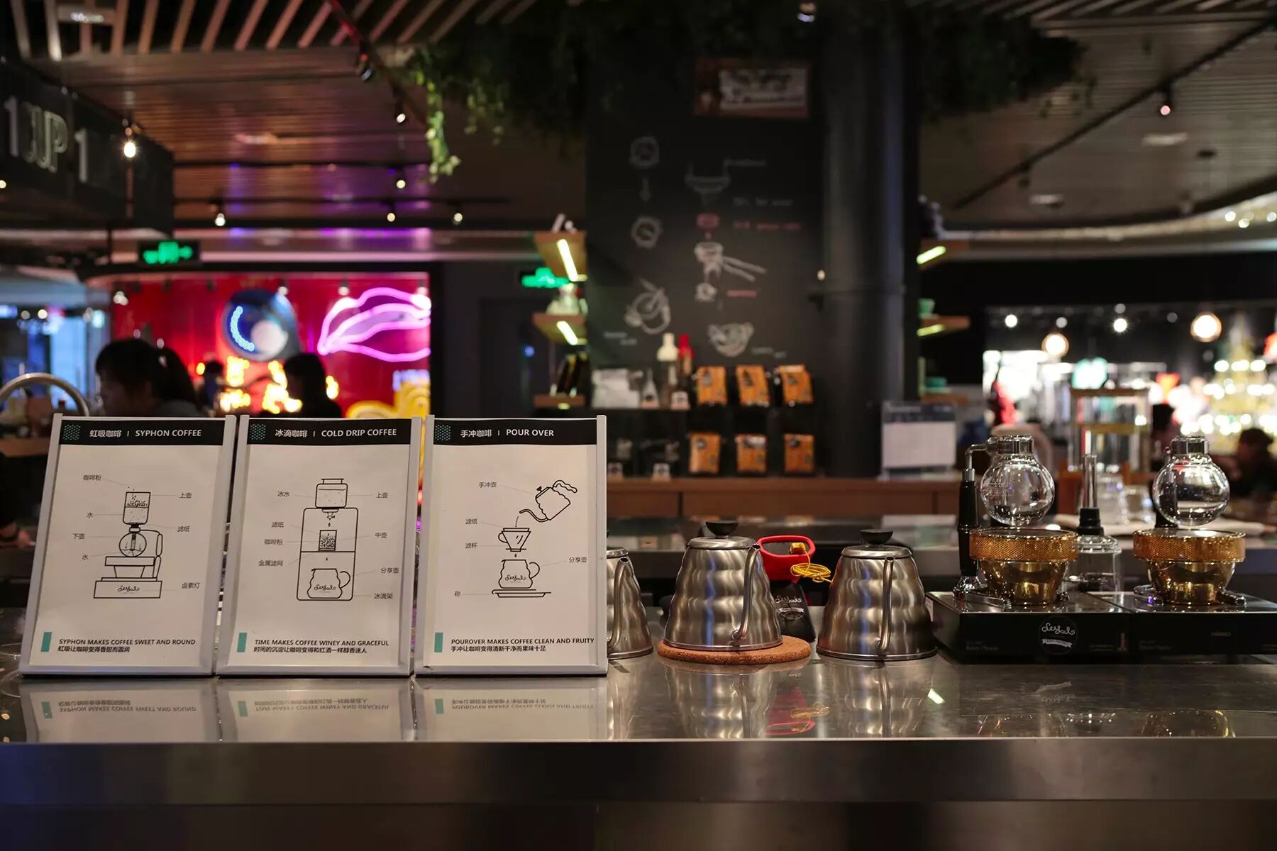 推荐饮品:单品手冲及虹吸★,冰滴★、气泡和意式★
