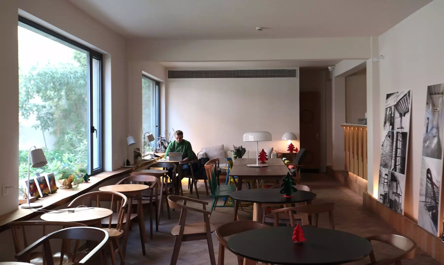 宽敞的大吧台加上几张零星桌位,又一家自己烘豆子的小店,咖啡偏中深烘,提供季节性的单品。意式咖啡方面,牛奶咖啡和美式黑咖,会选用不同的咖啡豆。算是一家服务周围居民的社区型咖啡馆,每天五点就关门。