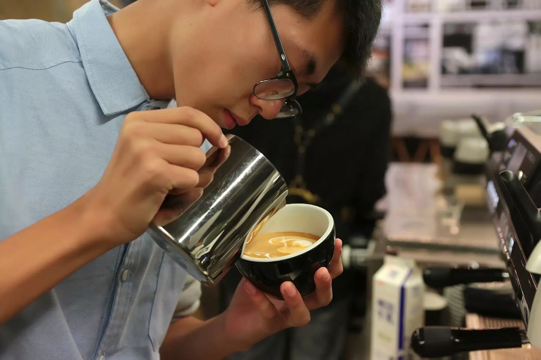 两人亦各有所长:连超的拉花拿铁,能够拉出独一无二的植物图案,比如,一只“疯狂的萝卜”。如果想喝黑咖啡,那么爱乐压全国比赛冠军的陈思思,也一定不会让你失望的!