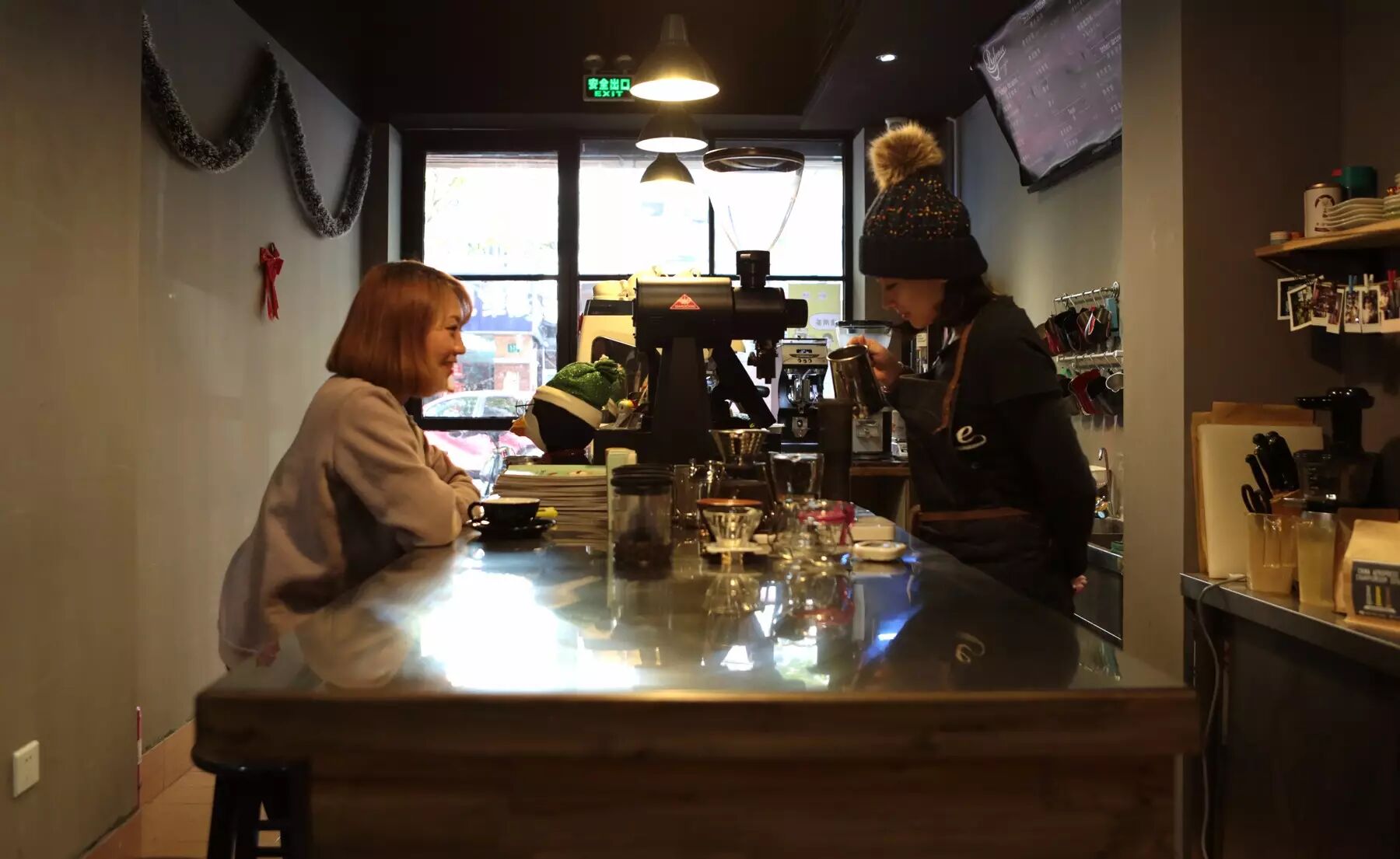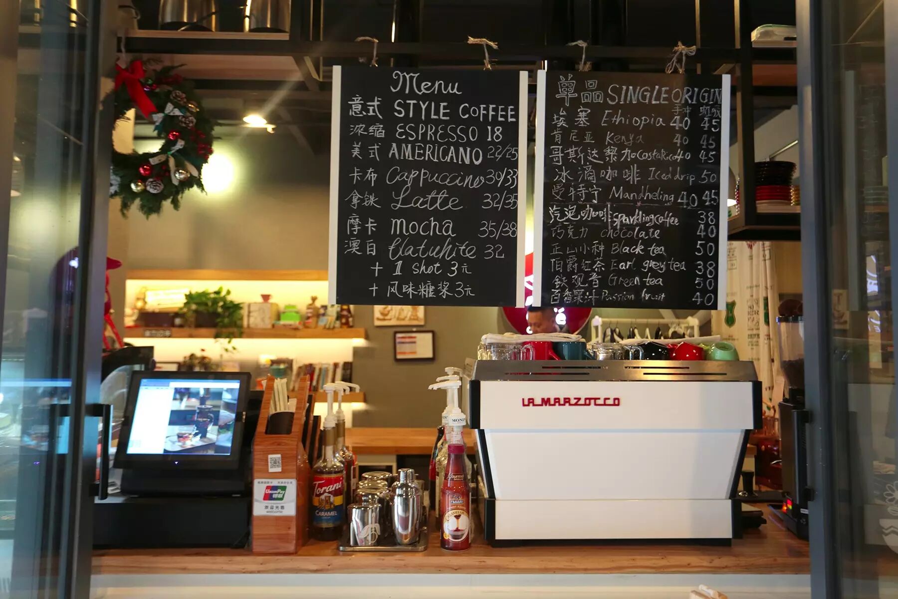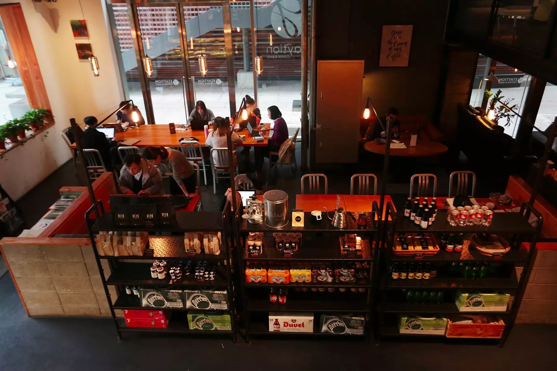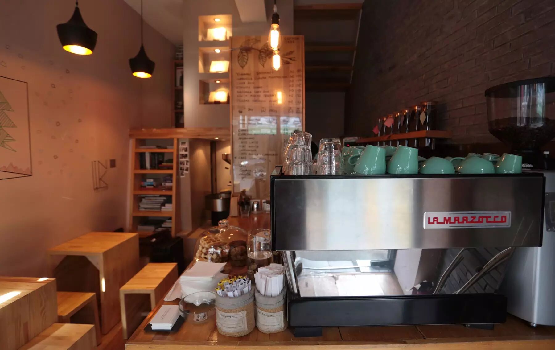 店内布局虽人紧凑,但却是舒服的,这样的装修风格也吸引了很多附近上班的老外与咖啡爱好者,上班途中或休息时来上一杯。
