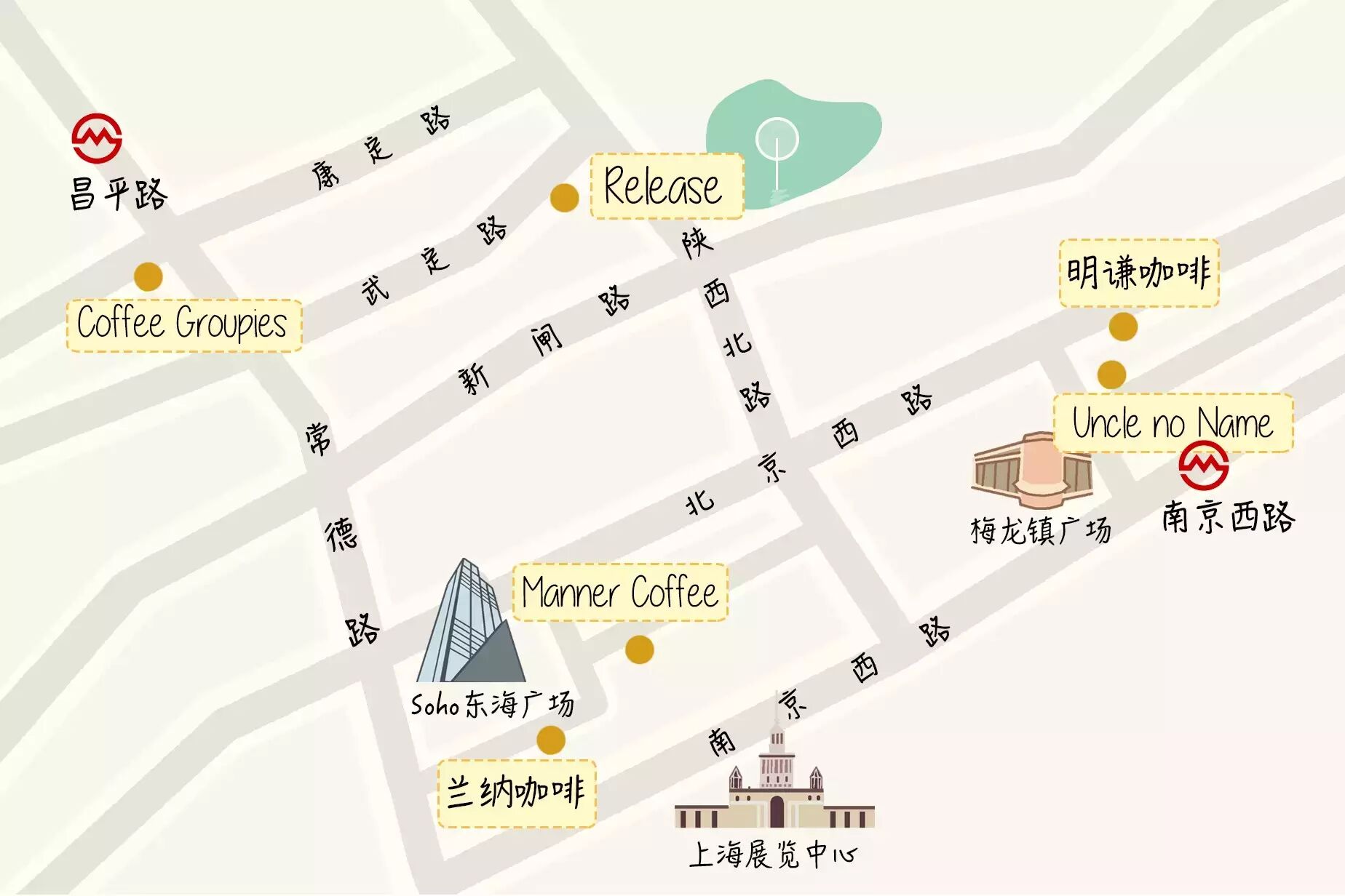 我们就不多罗嗦了,24家上海精品咖啡馆,按照相邻区块分为5个大区( 静安区南京西路商圈、人民广场商圈、淮海路商圈、上海市西南、上海市北 ),另有3家为小型连锁(少于10家门店),故单独在最后列出。