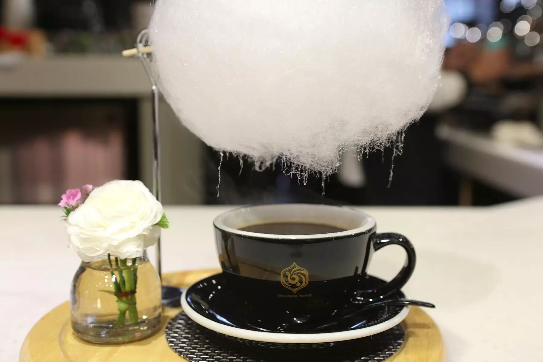 另外,麦隆的另一大卖点是自家的“创意咖啡”,我们尝试了一杯店内点击率最高的“甜心雨”—热美式咖啡上顶着一朵棉花糖,当咖啡的袅袅热气,慢慢融化棉花糖的时候,就真的好像下雨一样呢!