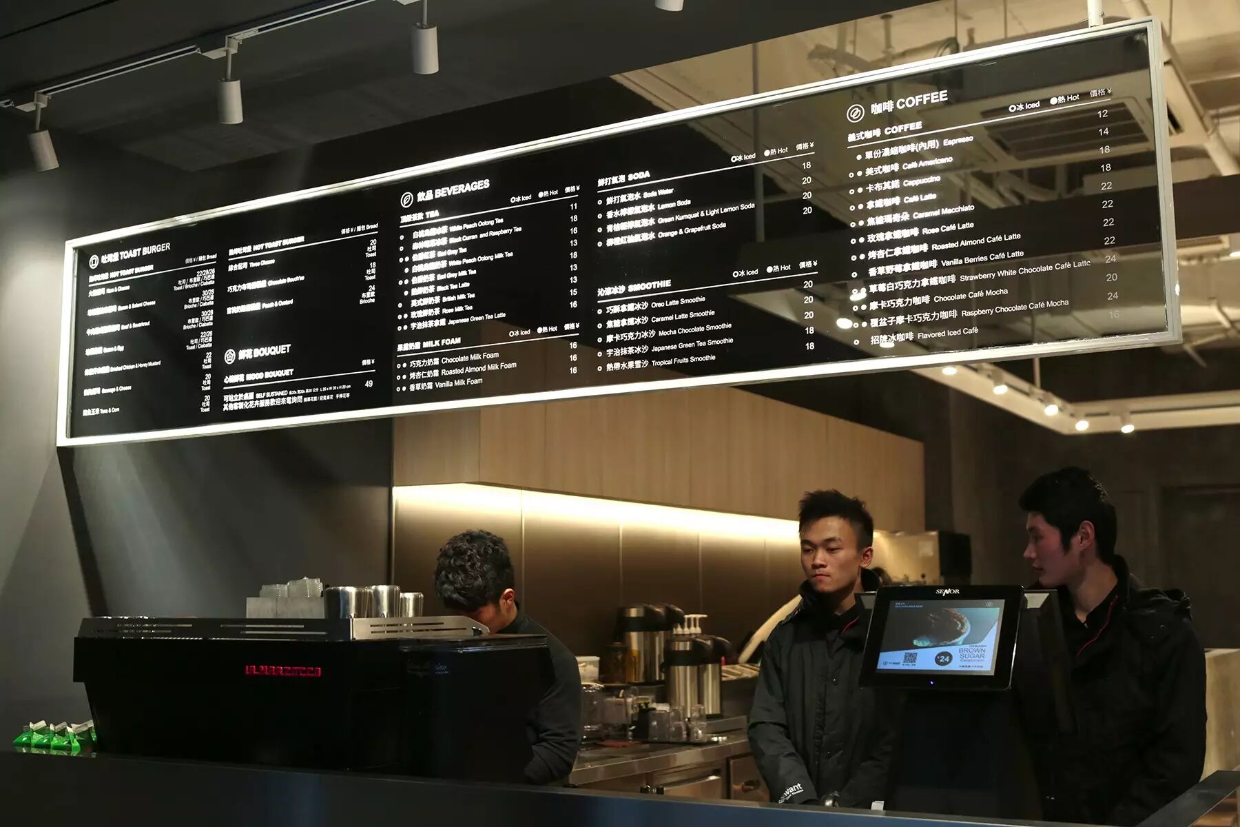 目前生意最好的就属K11地下二层,舒适的装修、开放式的吧台完全以咖啡为主角的设计,可以看到极具现代感的咖啡机、一排冰滴、手冲咖啡,让人可以一边观赏咖啡的製作、一边跟咖啡师话家常。