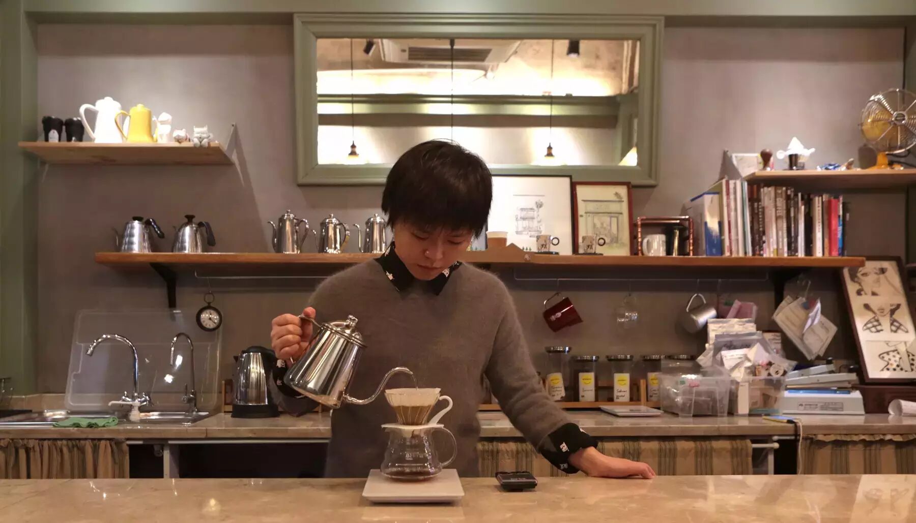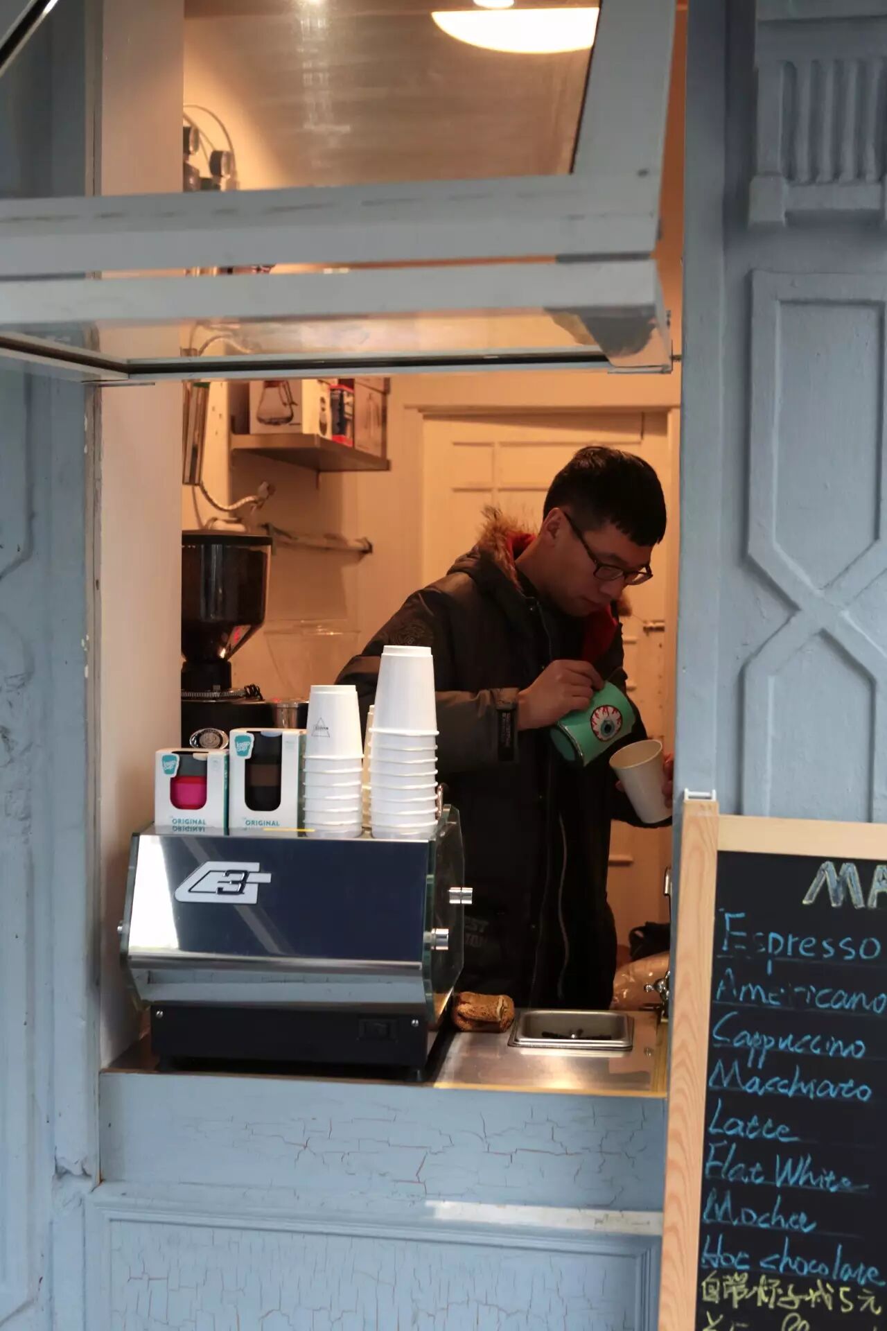 店主Marc,三年前厌倦了曾经的工作,向往人生新一阶段的生活状态,萌生了了开咖啡馆的想法。但他并没有急于经营,不断学习摸索中,终于成为了咖啡大赛的评委。Marc表示,在了解客人喜好之前,先要自己会喝。了解什么是好喝的咖啡,咖啡为什么不好喝,才能提供给客人更满意的一杯。