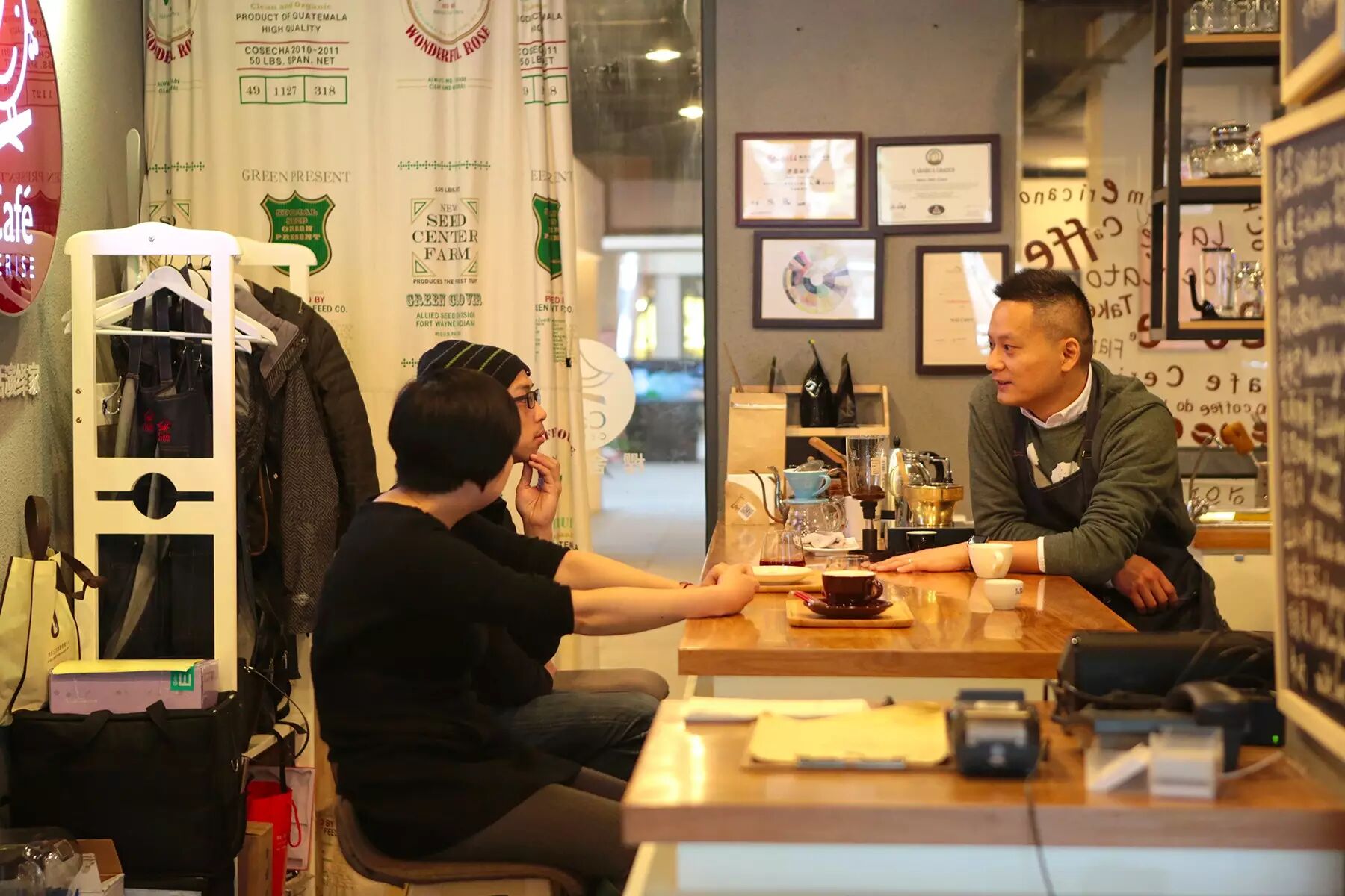 但是,那满墙的各种咖啡比赛获奖证书,已经默默道明了这间小店的品质。问他们,参加比赛都能取得好成绩有何秘诀,连超答,咖啡已是生活的一部分,认真做好每一杯,就是最大的秘诀。