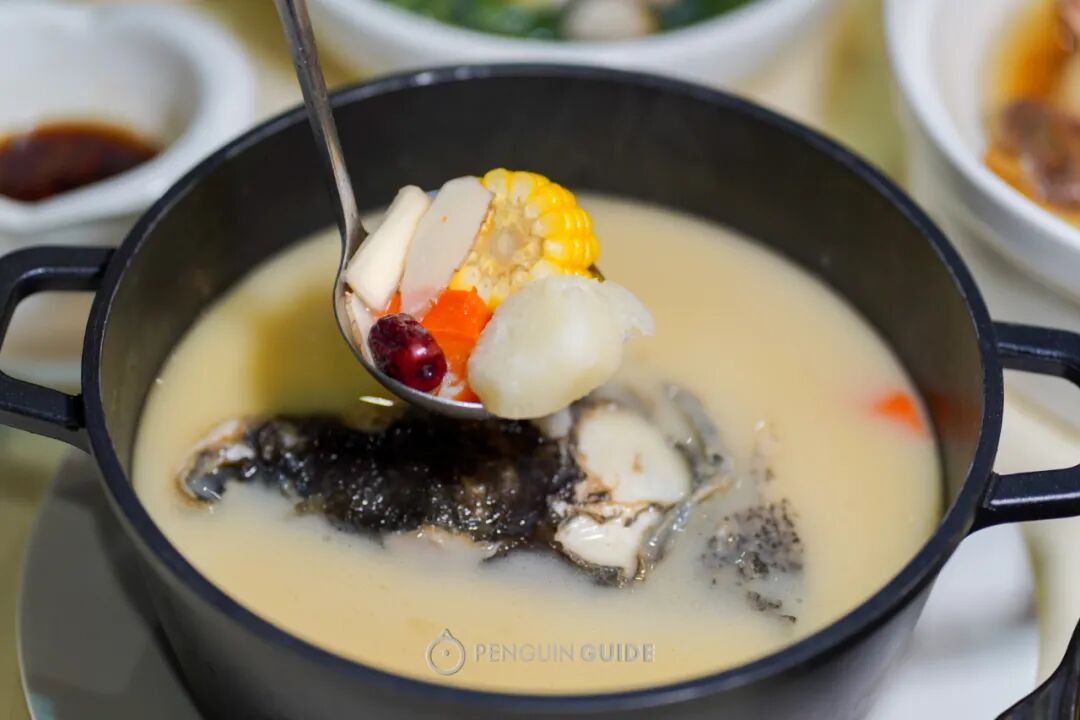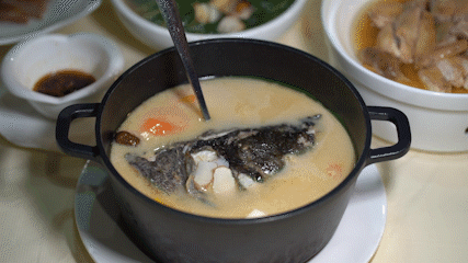鱼汤浓白清鲜,竟然没有半分腥味,反而因为药材的加入,多了几分温和的香气,在鲜甜后添一重回甘。
