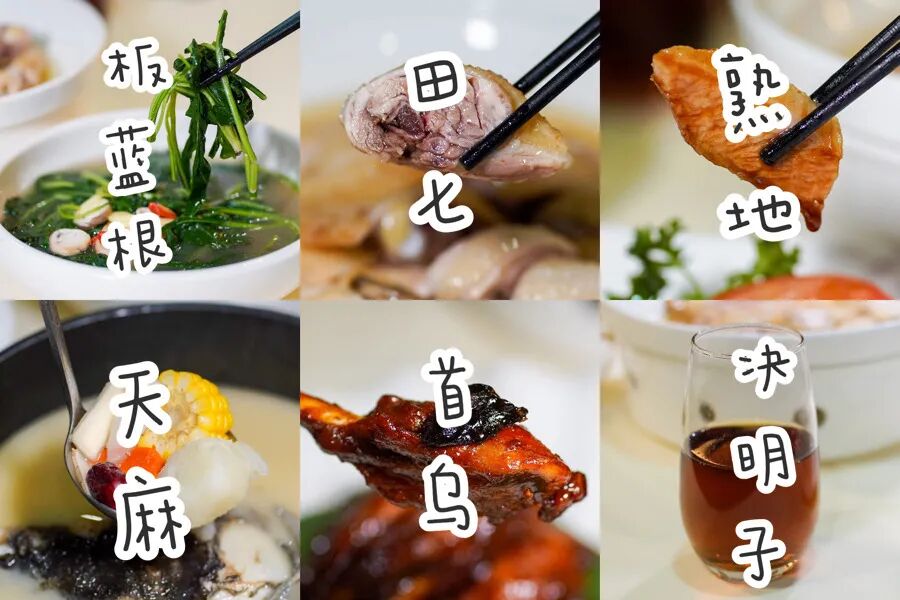 上汤板蓝根、熟地猪颈肉、首乌骨、田七鸡、天麻白芷大鱼头汤……洋洋洒洒过百道菜,任意一道都是药材打头阵。