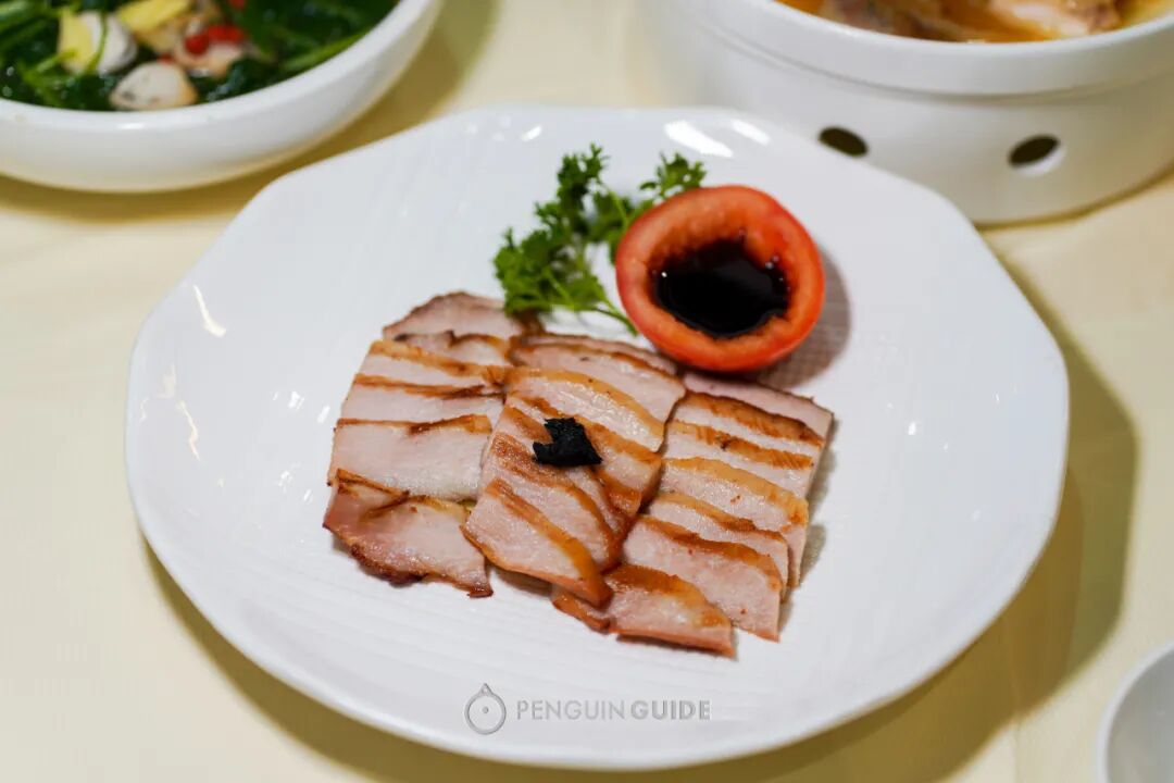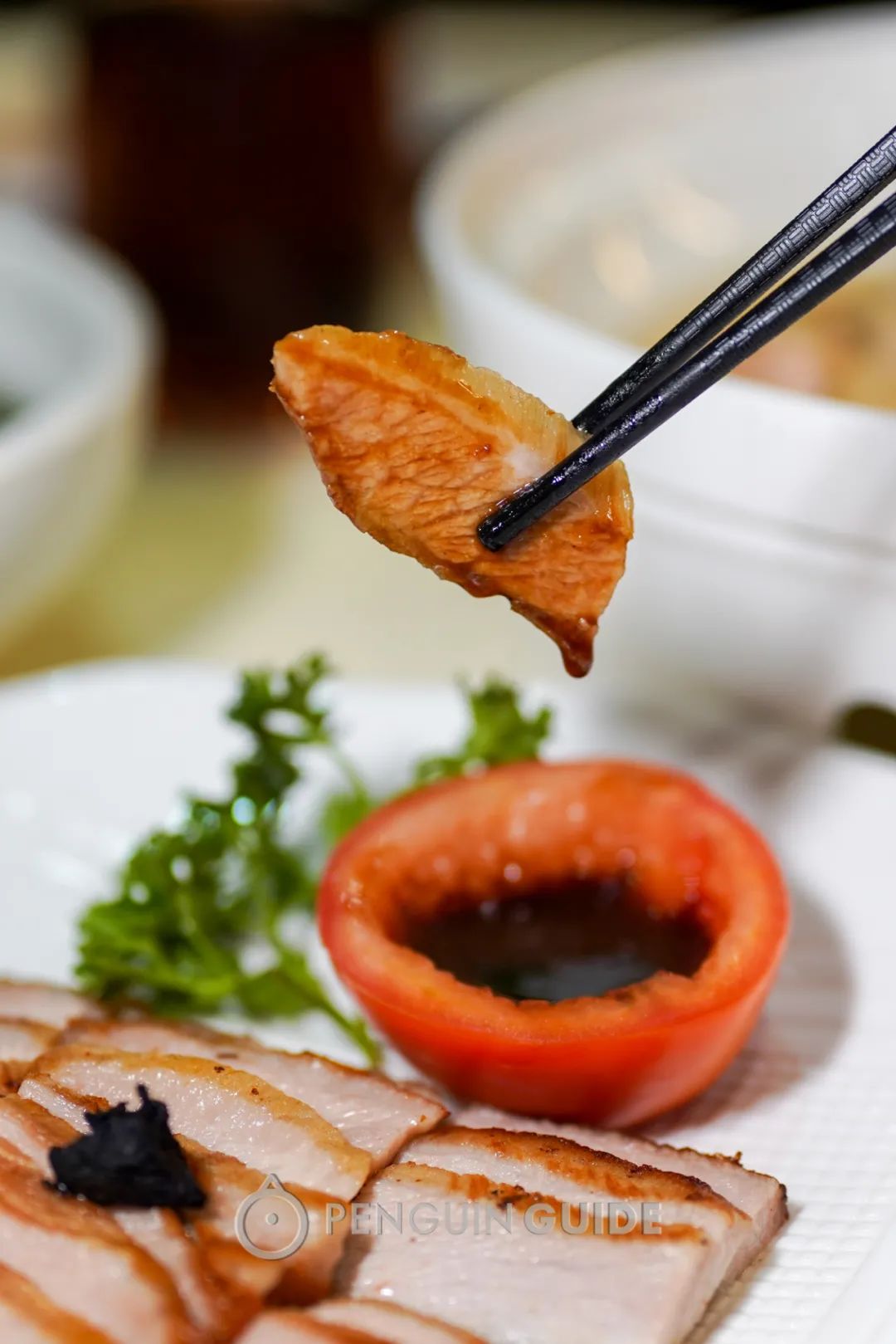 这里的做法,让人完全感受不到是一道药膳菜。以熟地腌制的猪颈肉,再蘸着熟地熬成的酱汁吃,风味内而外渗透,给肉平添了一份丰厚的甘甜。