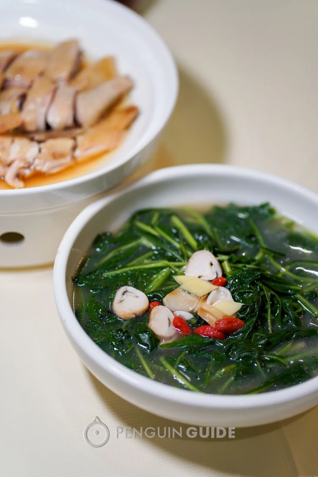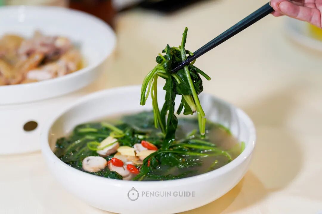 这里做得很不错,板蓝根叶子吃起来很接近菠菜,但透着一丝奇异的草本香气,口感也更加脆嫩,蛮清甜的,据说是云南种植基地的特供。