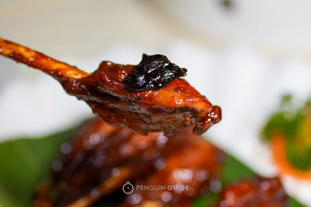 烤制火候也控制得好,肉质爽而嫩,一口一片,竟然有点上瘾。