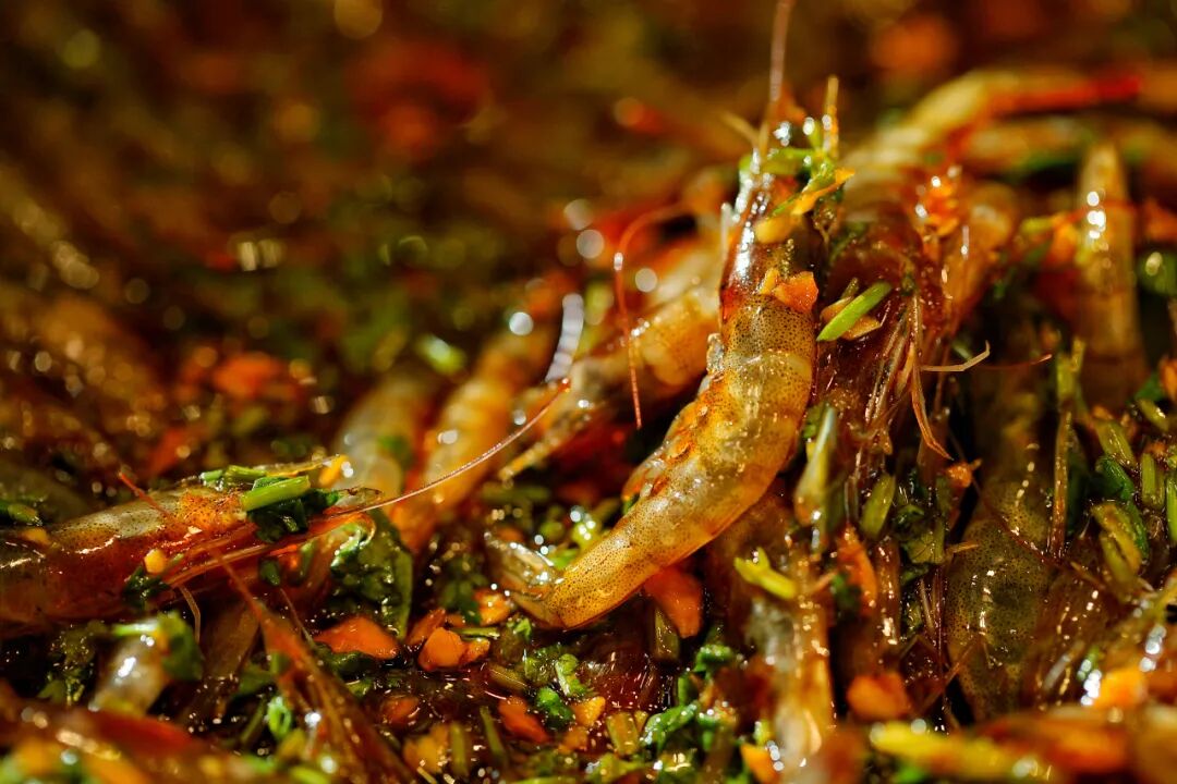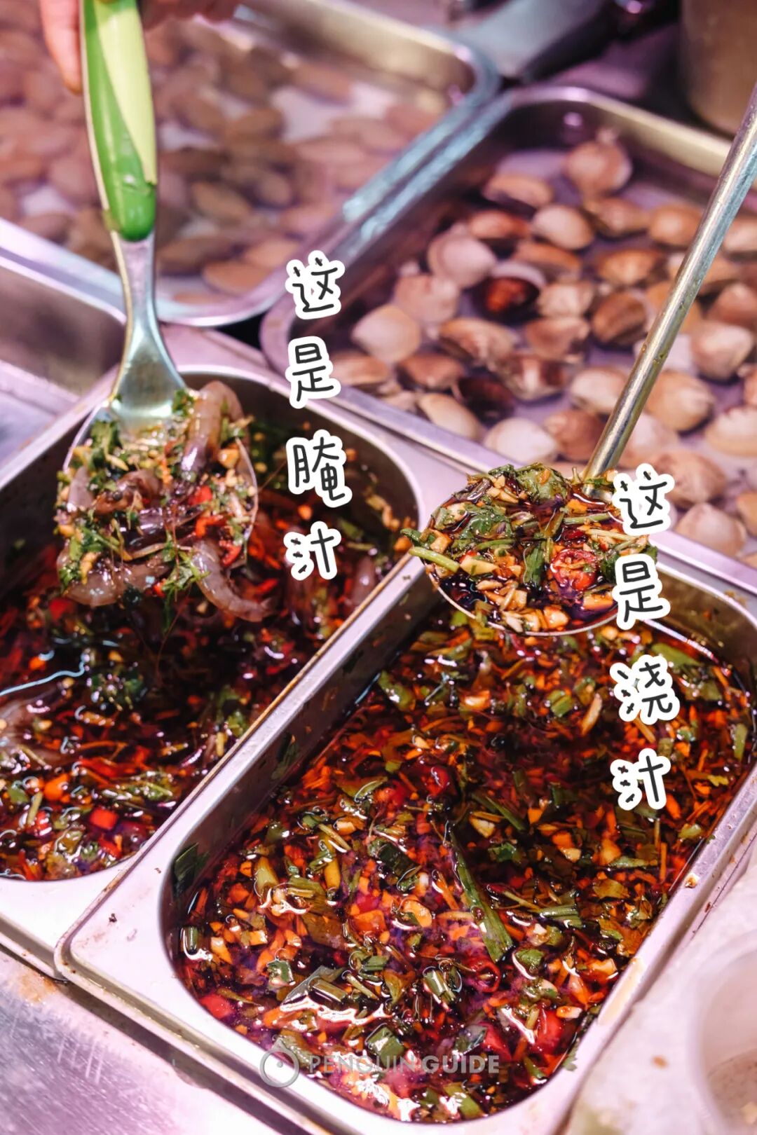 一份腌虾,只选大小均匀的沙虾,活蹦乱跳地进行生腌,吃时只需上下牙齿轻轻一挤,仿佛上一秒还活着的躯体便滑到舌尖,滑溜中带点绵绵的撕咬感,实在是美妙。