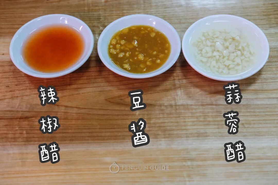 而这些打冷还有各自的蘸料,一菜一味碟,自有一套搭配逻辑:生腌必须蘸辣椒醋,鱼饭蘸普宁豆酱,而卤肉则要蘸蒜蓉醋……