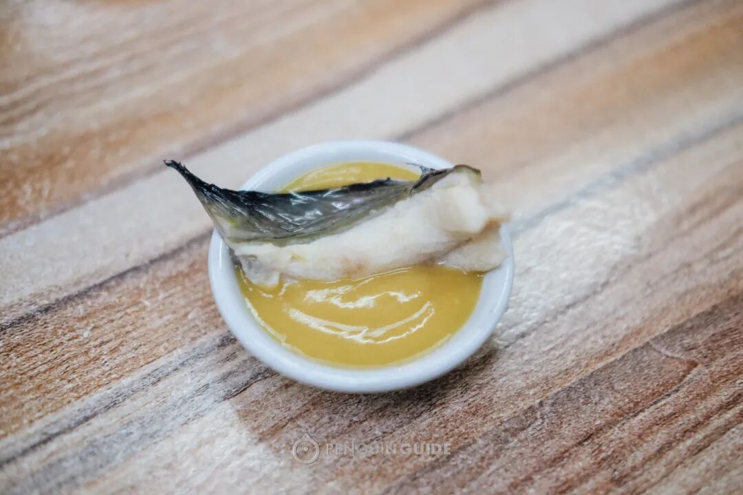 为了搭配这尊贵的鱼胶,店家还会上一碟自制的豆酱,里面有浓浓的复合鲜味,让鱼胶多了风味上的变化。