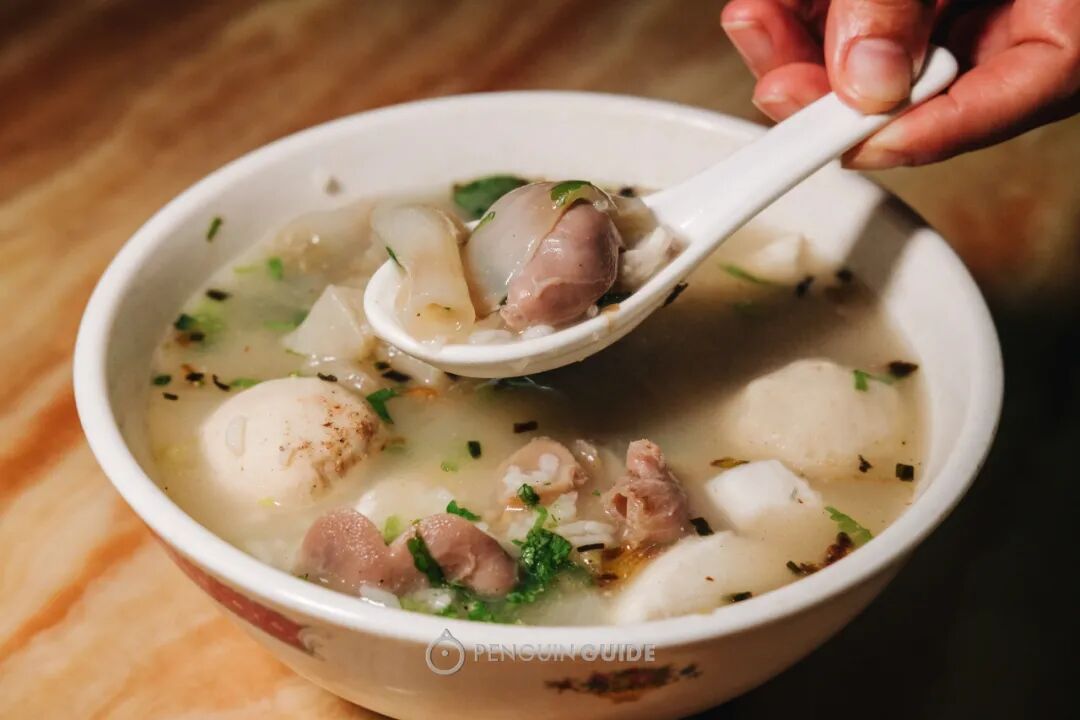 擅长物尽其用的潮汕人,大多是内脏十级爱好者。当地最有名的鱼杂粥,里头就放了大量鱼鳔、鱼肠等鱼内脏,异常生猛。