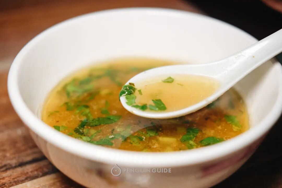 潮汕人追寻鸭粥,都是为了这一口汤而去。可以淋在粥上,让粥底添一份咸鲜,也可以只要一小碗原汤喝, 顿时暖得浑身发热。