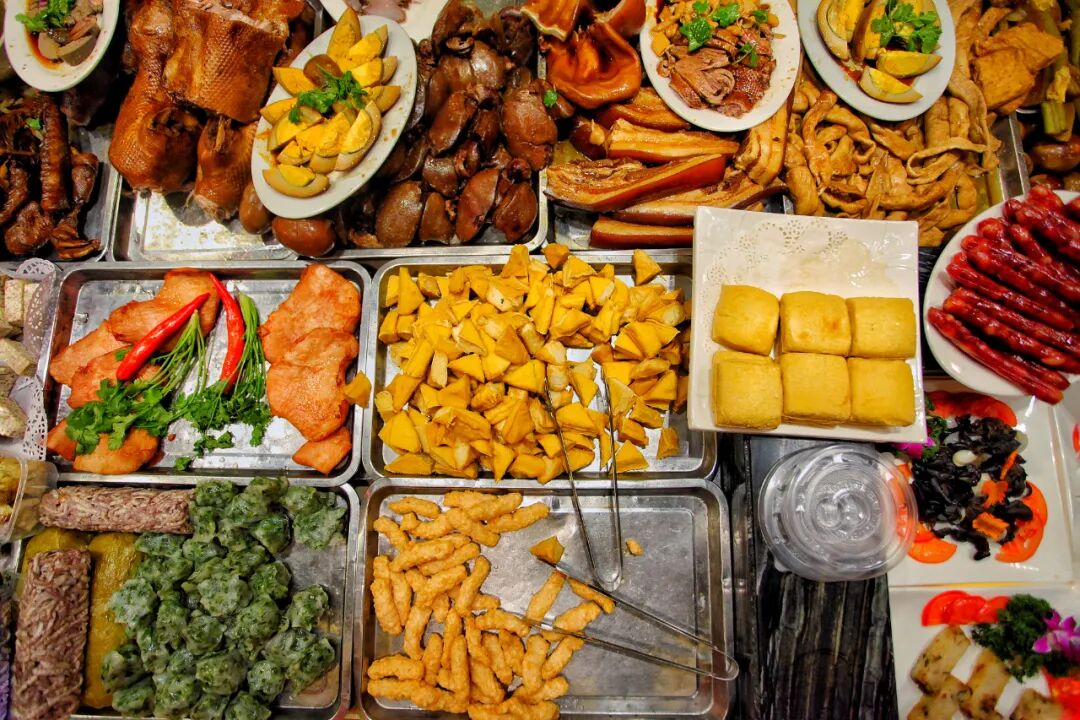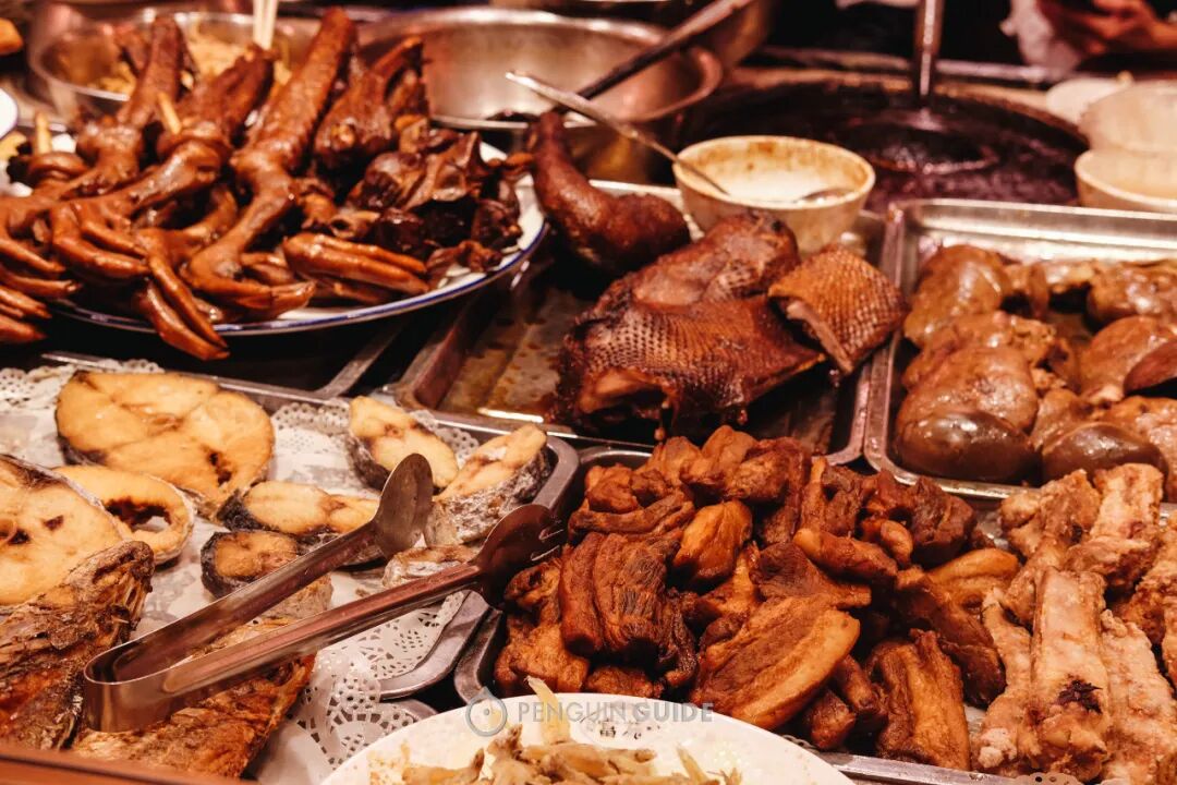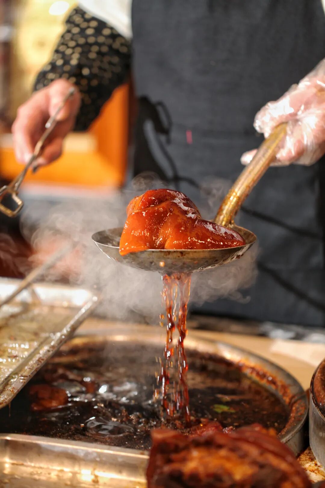 当然少不了卤味!!每家都有一锅独门陈年老卤,各色卤味在灯下散发出诱人的金棕亮光,品种让人挑花了眼。