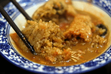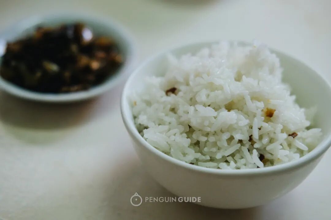 随牛三宝汤上来的咸饭也很优秀,与泉州常见的不一样,看似寡淡的白色,一入口,竟是葱头油饭。