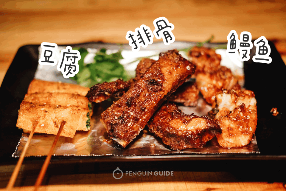 实在吃不下太多,随便点一点排骨、鳗鱼、豆腐、猪脑、鸡蛋、海螺吧。印象最好的是猪脑,表层覆上一层店家自调的酱料,烤出来带着微微起焦,像在吃烤豆腐!