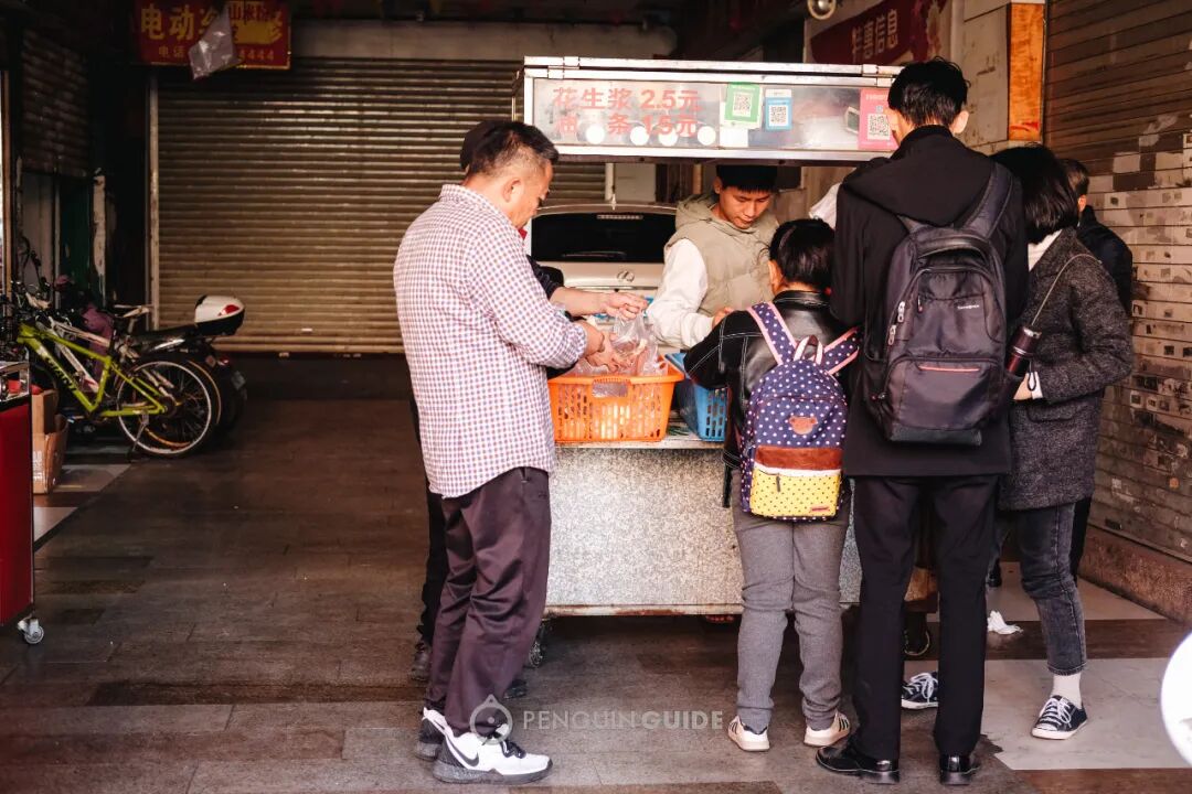 一般都是卖完就收摊,早则7、8点,晚则9、10点。所以,要喝这一口花生浆,要赶早