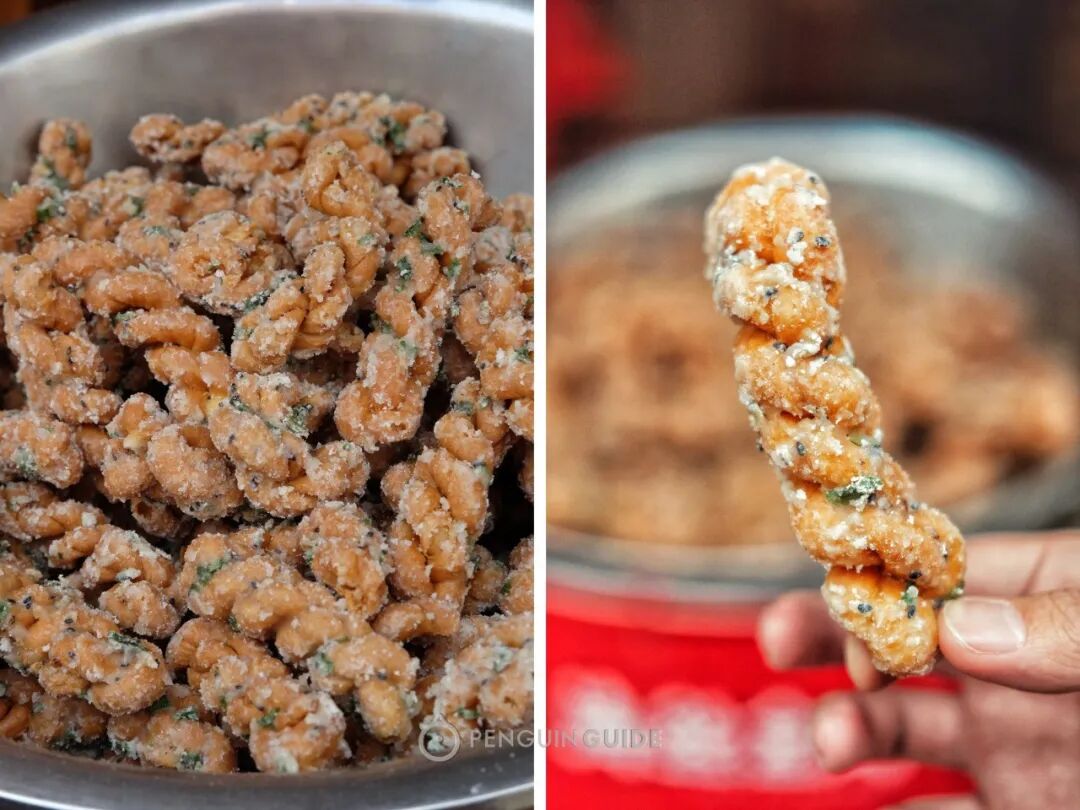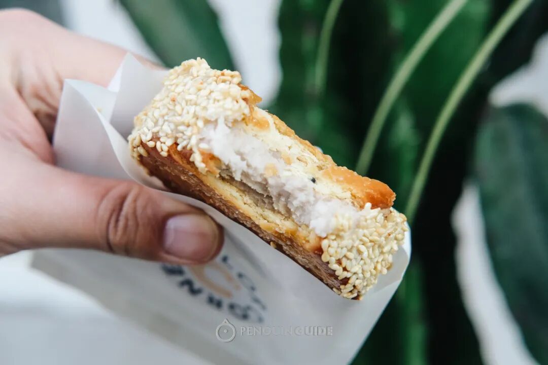 入口开啃,油香与芝麻香很足,外层酥脆,内里是蜂窝状气孔,带有绵绵的韧劲。咦,这口感,不就是泉州人的可颂🥐?