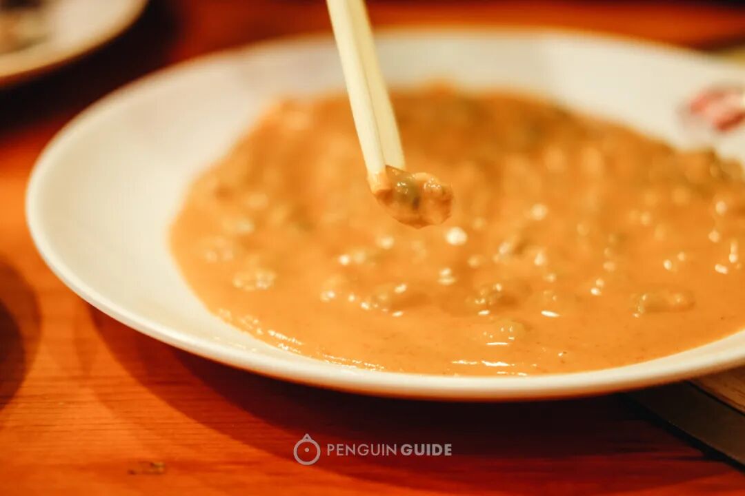 特调的酱料,像是花生酱、芝麻酱和一点沙茶酱的混合体,浓郁醇厚,味道层次很丰富。