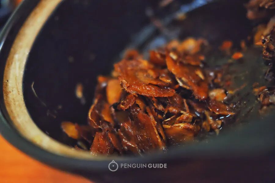 其实姜母鸭最好吃的是这片老姜,慢慢炖煮至红糖色,辣味收敛许多,吃起来满口酱香焦香。