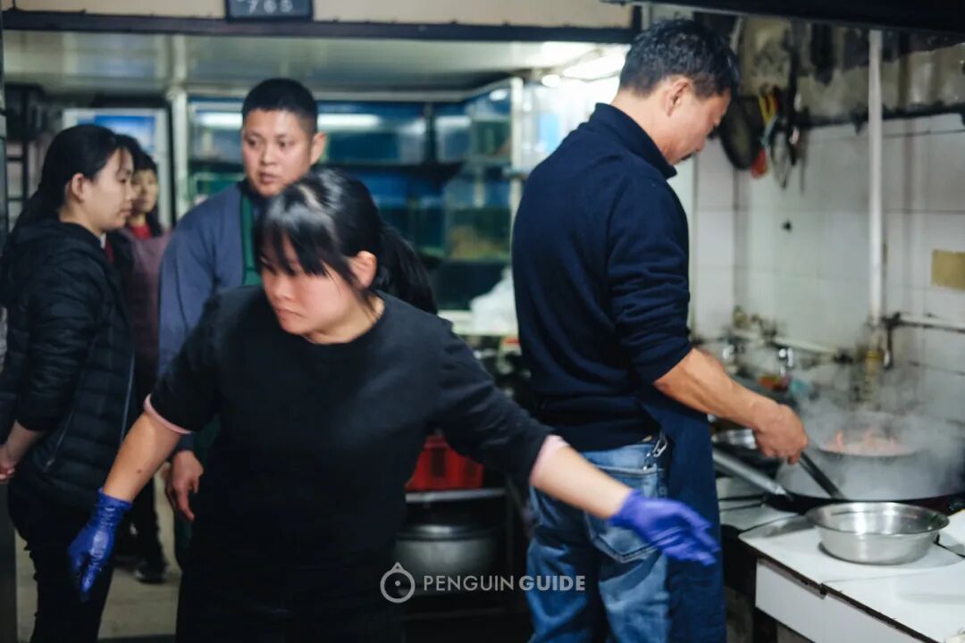 能有这样行云流水的后厨,因为这是一间家庭小馆,爸爸炒菜,家人打下手,用33年培养出的默契。