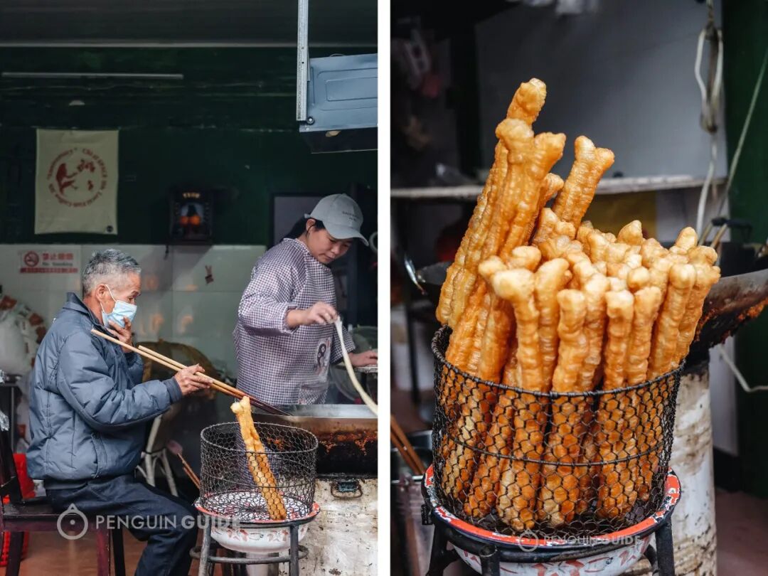 起床第一顿,我一般是这个路线:先去油条店买两条新鲜炸出的油条,然后去阿玲点一碗花生汤。